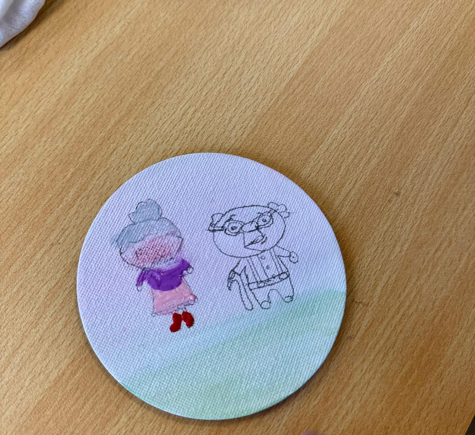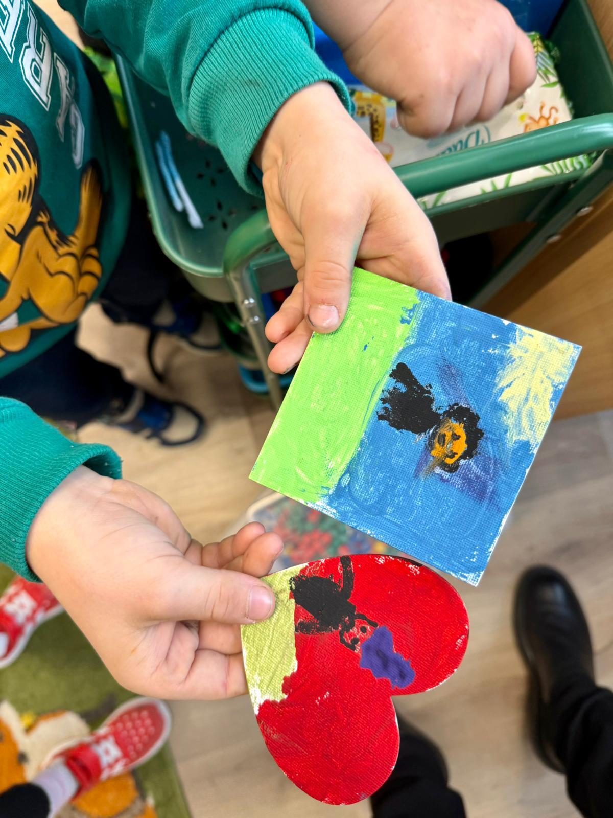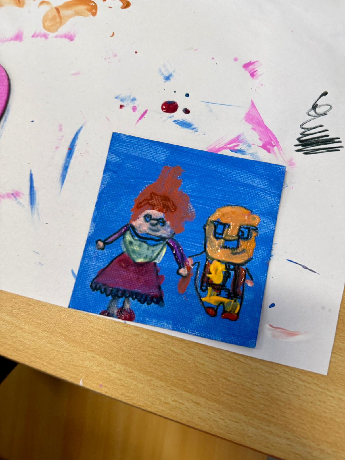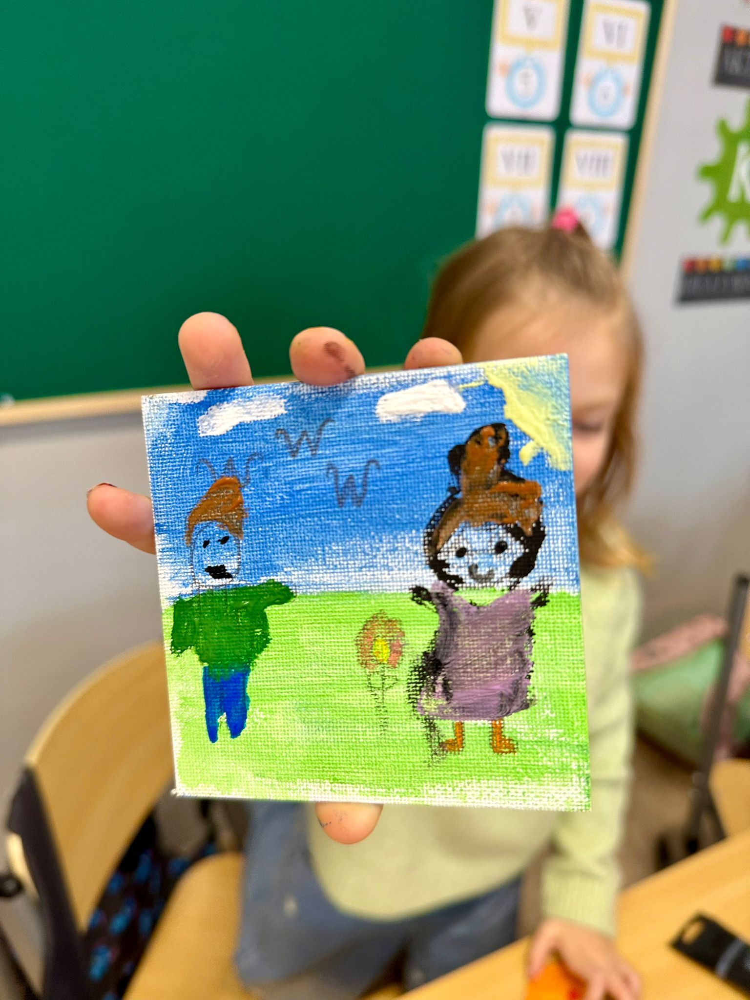 Gdy tło było gotowe, Bystrzaki przystąpiły do malowania portretów Babci i Dziadka. To zadanie wymagało uważnej obserwacji, przywoływania cech charakterystycznych oraz przenoszenia swoich wyobrażeń na płótno. Każda praca była inna, niepowtarzalna i bardzo osobista – dokładnie taka, jak relacje łączące dzieci z ich najbliższymi.