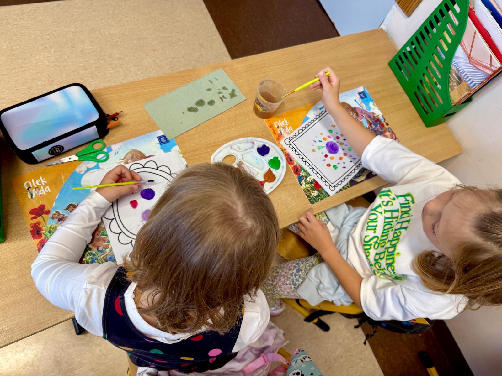 Zainspirowani książką, sami stworzyliśmy swoje kropki. Każde dziecko namalowało kropkę po swojemu – kolorową, wesołą, pełną energii albo delikatną i subtelną. Wszystkie nasze prace znalazły się w pięknych ramach, a sala zamieniła się w małą galerię sztuki.