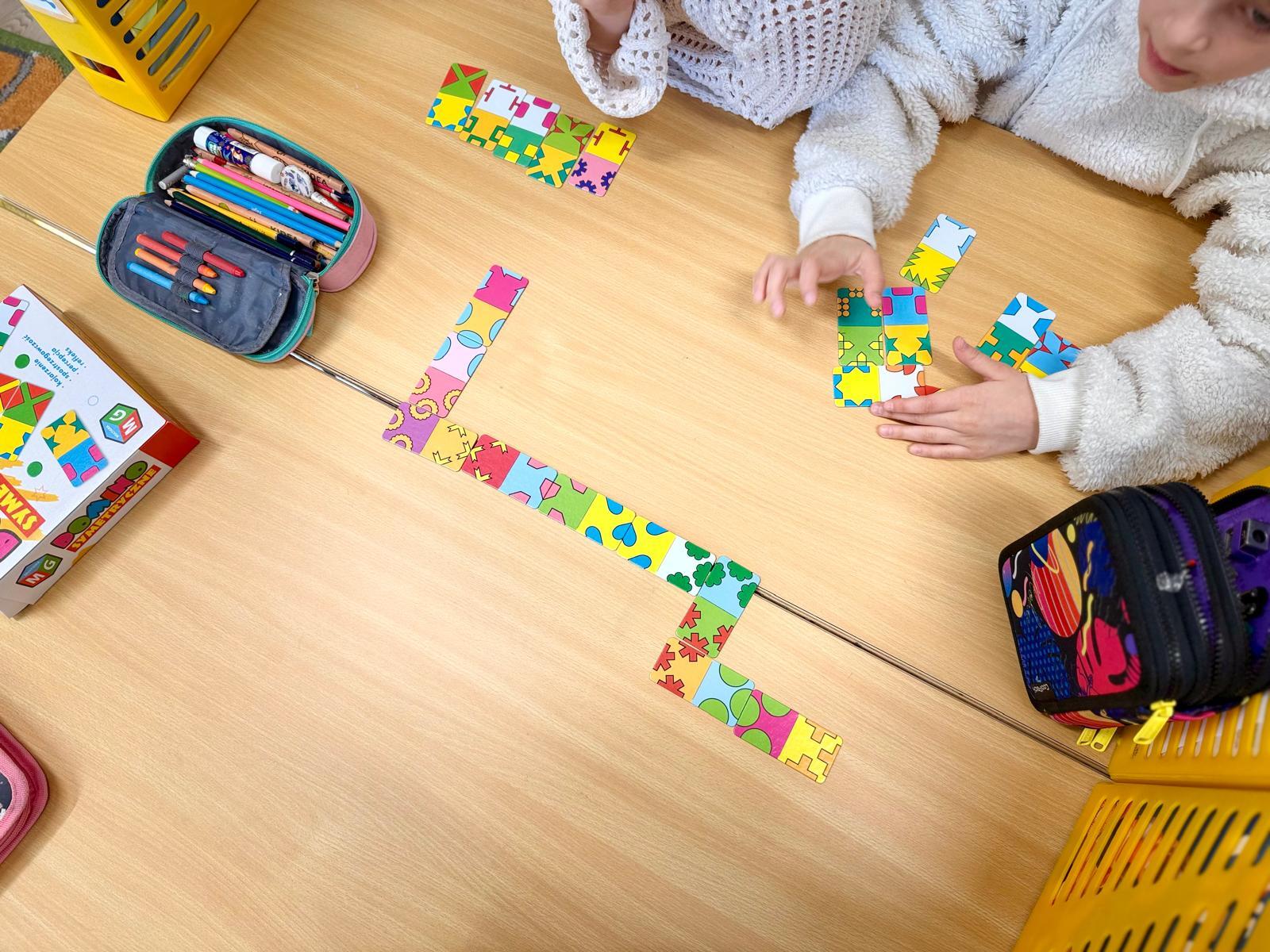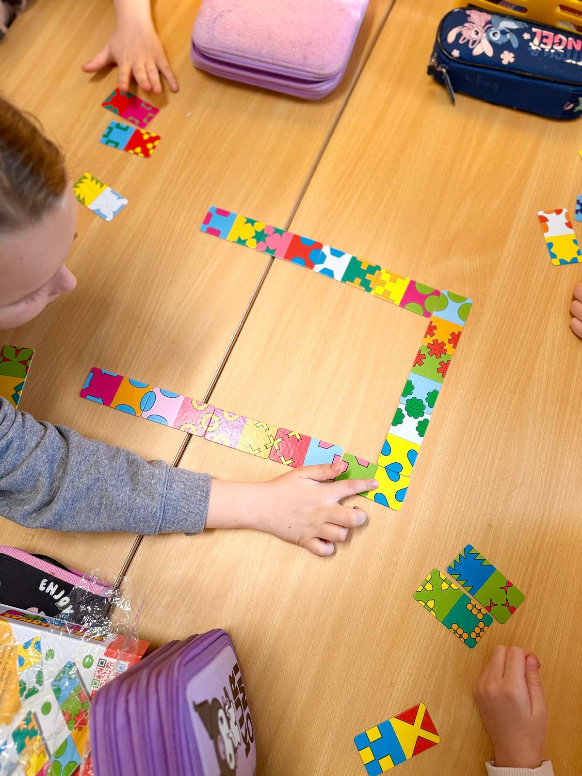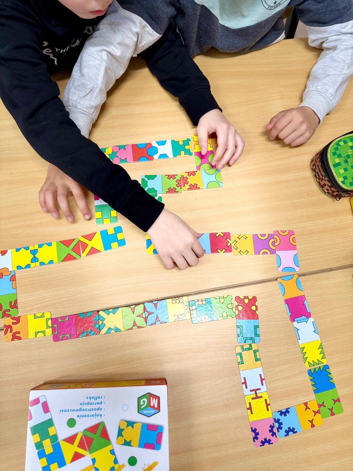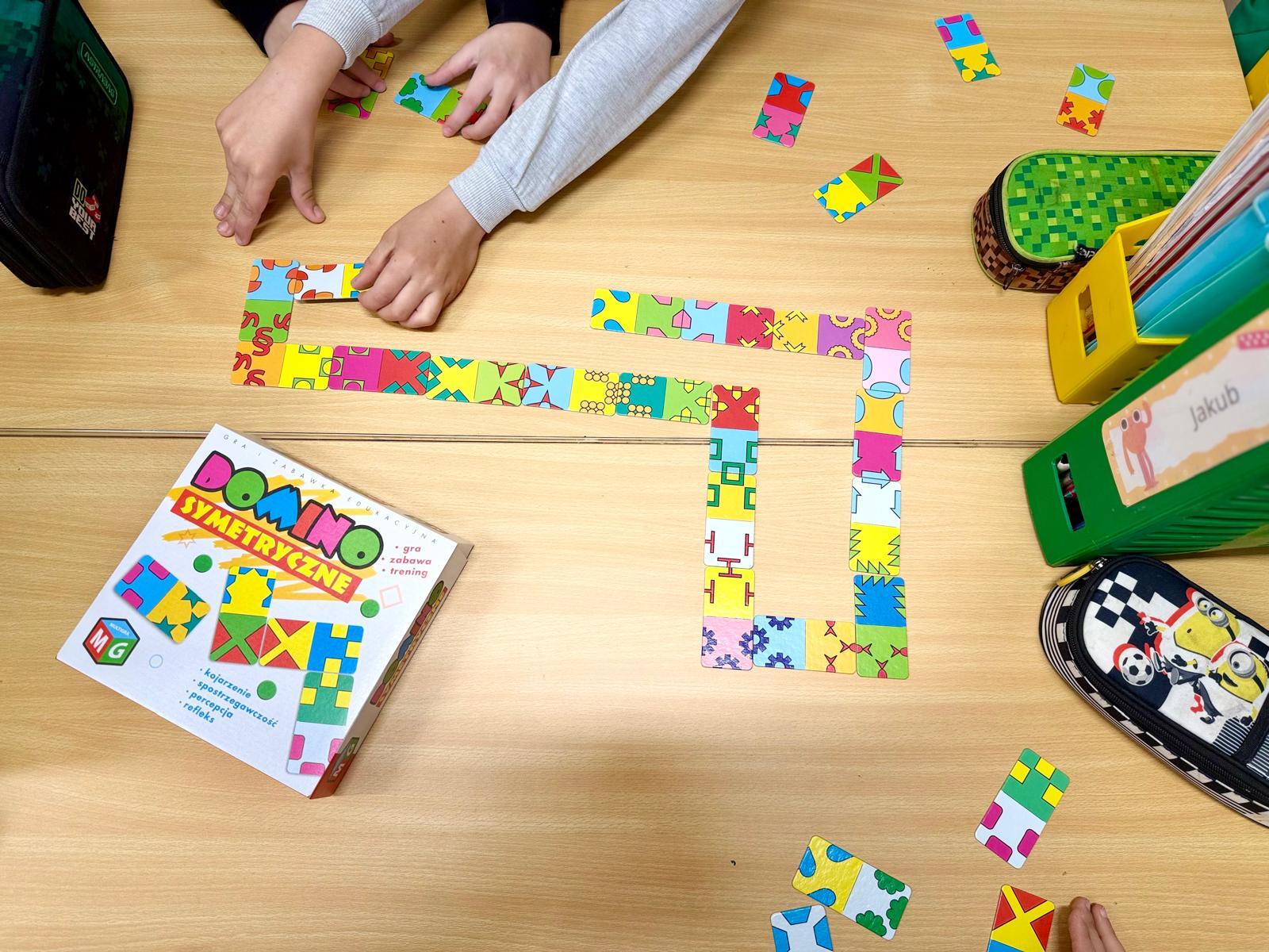 Dzisiaj na poranną rozgrzewkę przygotowałem symetryczne domino. Tym razem kluczowa była nie tylko obserwacja, ale również współpraca.