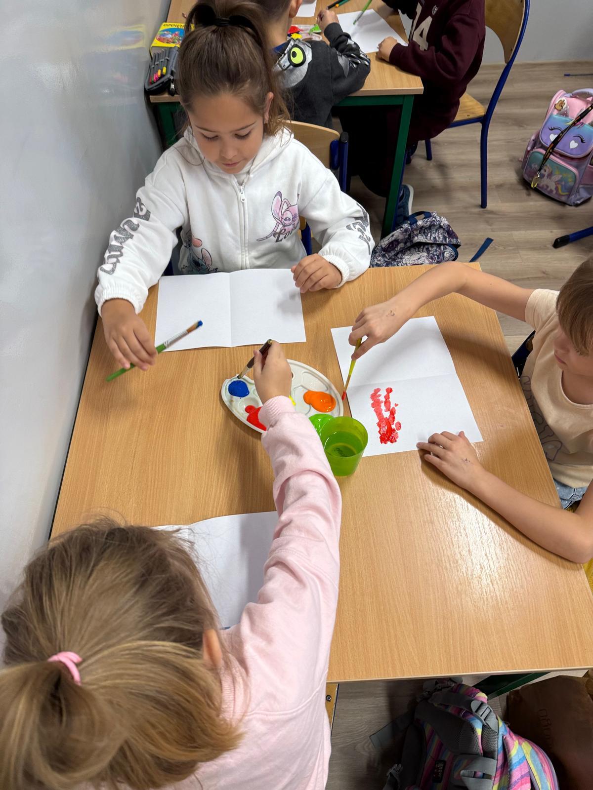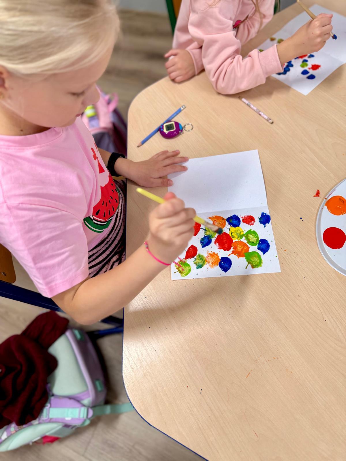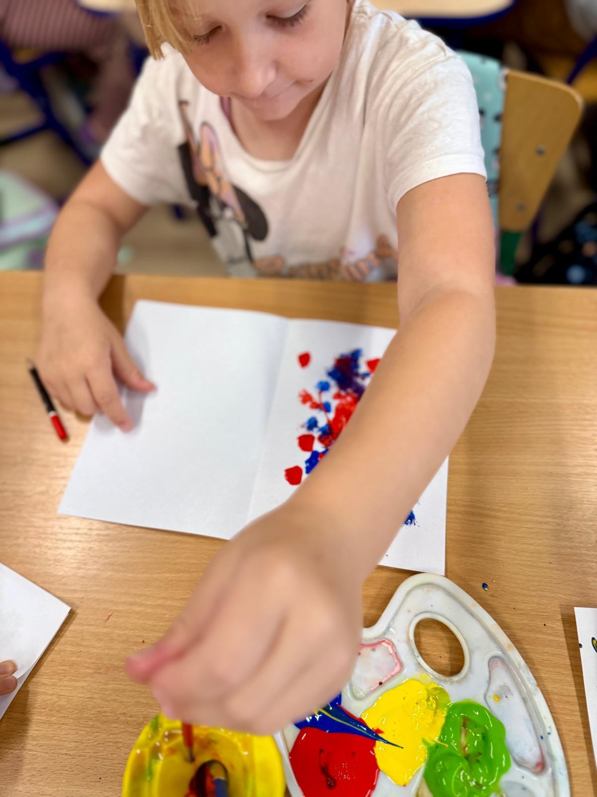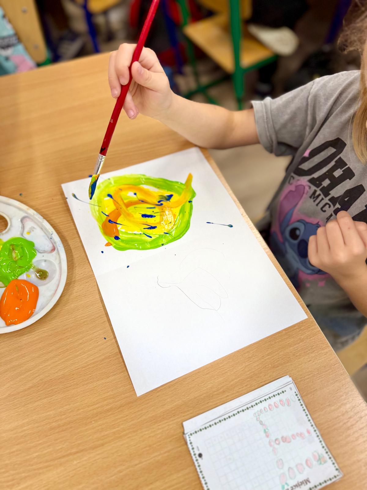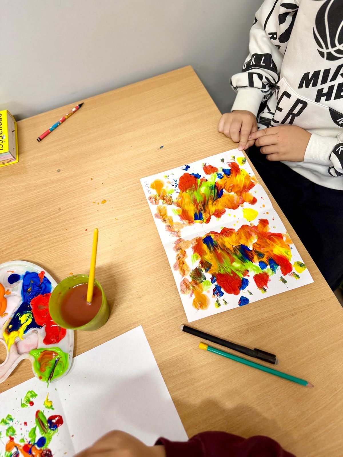 Przy okazji tej artystycznej zabawy wprowadziłem pojęcie osi symetrii. Dzieci same odkryły, że gdy kartkę złoży się na pół, powstaje odbicie lustrzane – dwa identyczne kształty. W ten sposób przekonały się, że matematyka i sztuka mogą się pięknie uzupełniać, a nauka może przyjść naturalnie – bez presji i w pełni radości.