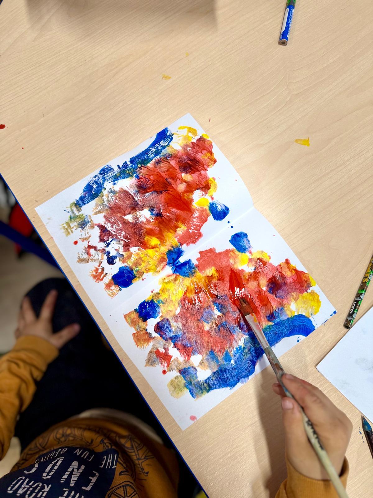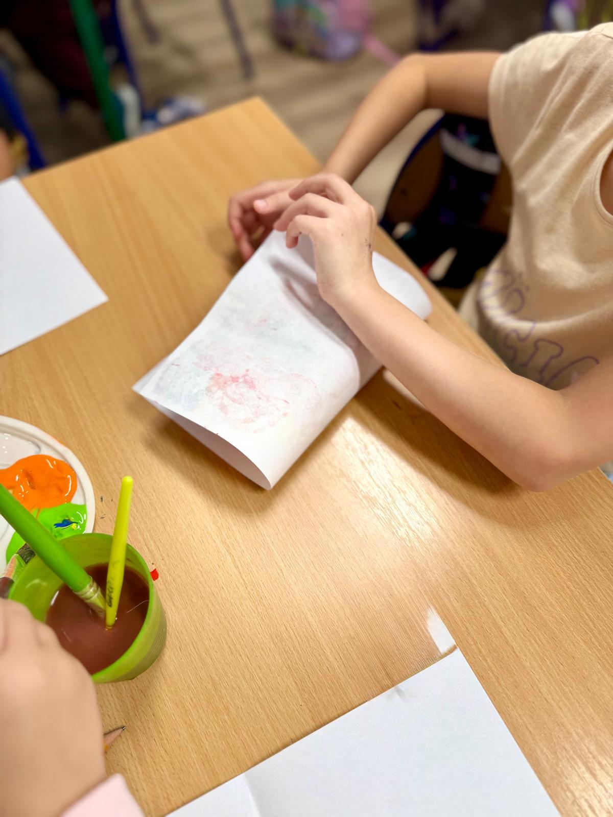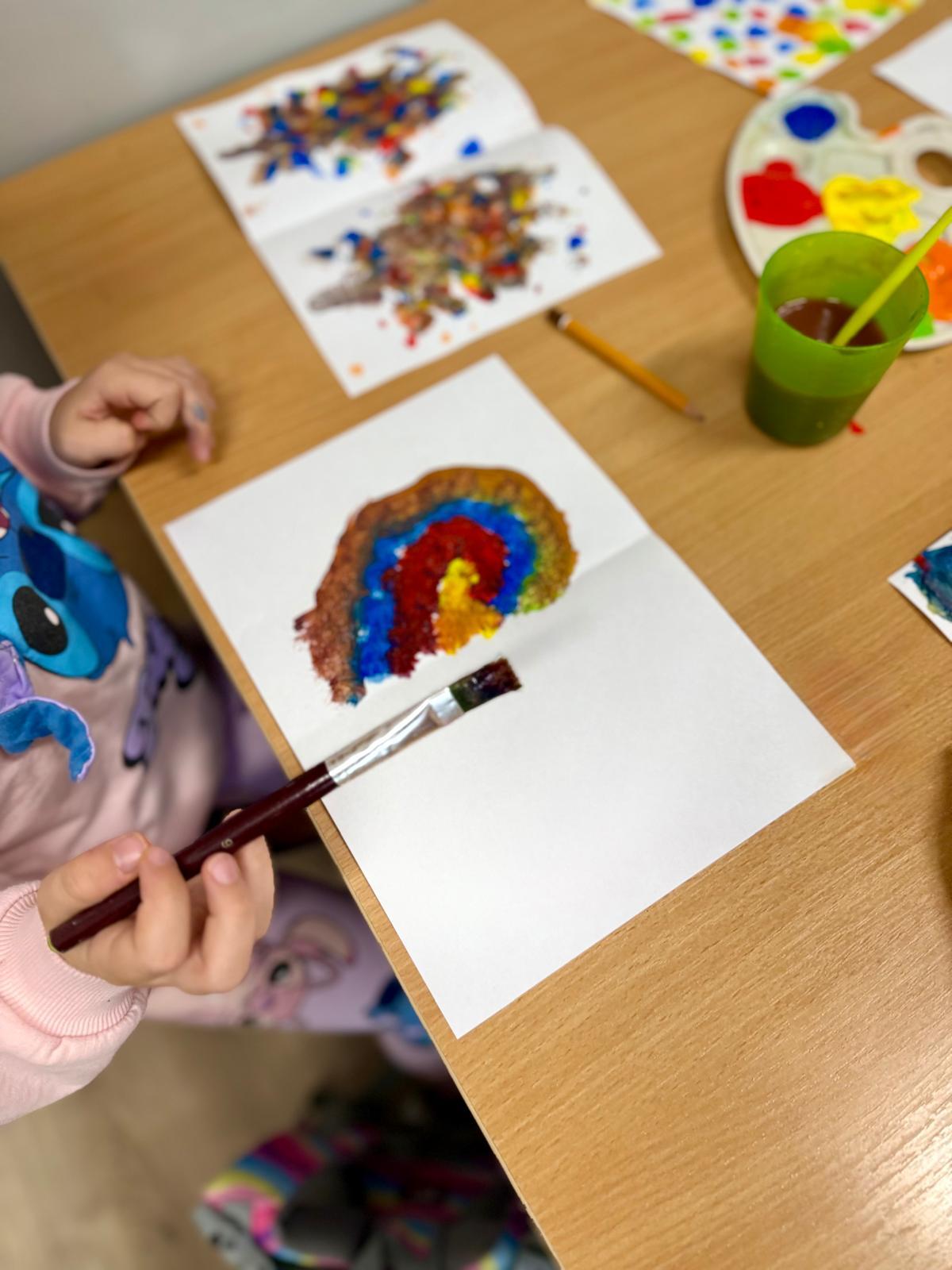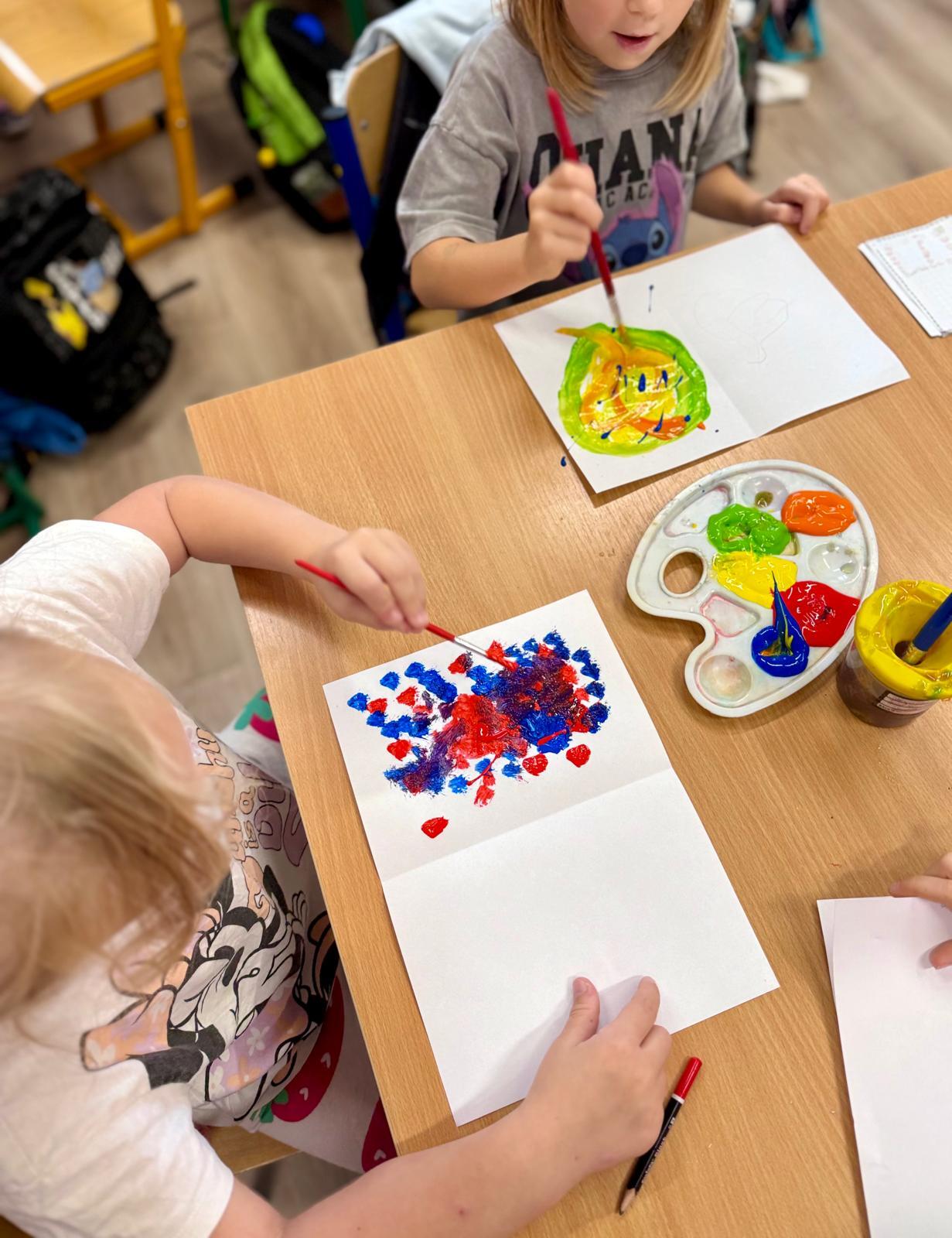 Przy okazji tej artystycznej zabawy wprowadziłem pojęcie osi symetrii. Dzieci same odkryły, że gdy kartkę złoży się na pół, powstaje odbicie lustrzane – dwa identyczne kształty. W ten sposób przekonały się, że matematyka i sztuka mogą się pięknie uzupełniać, a nauka może przyjść naturalnie – bez presji i w pełni radości.