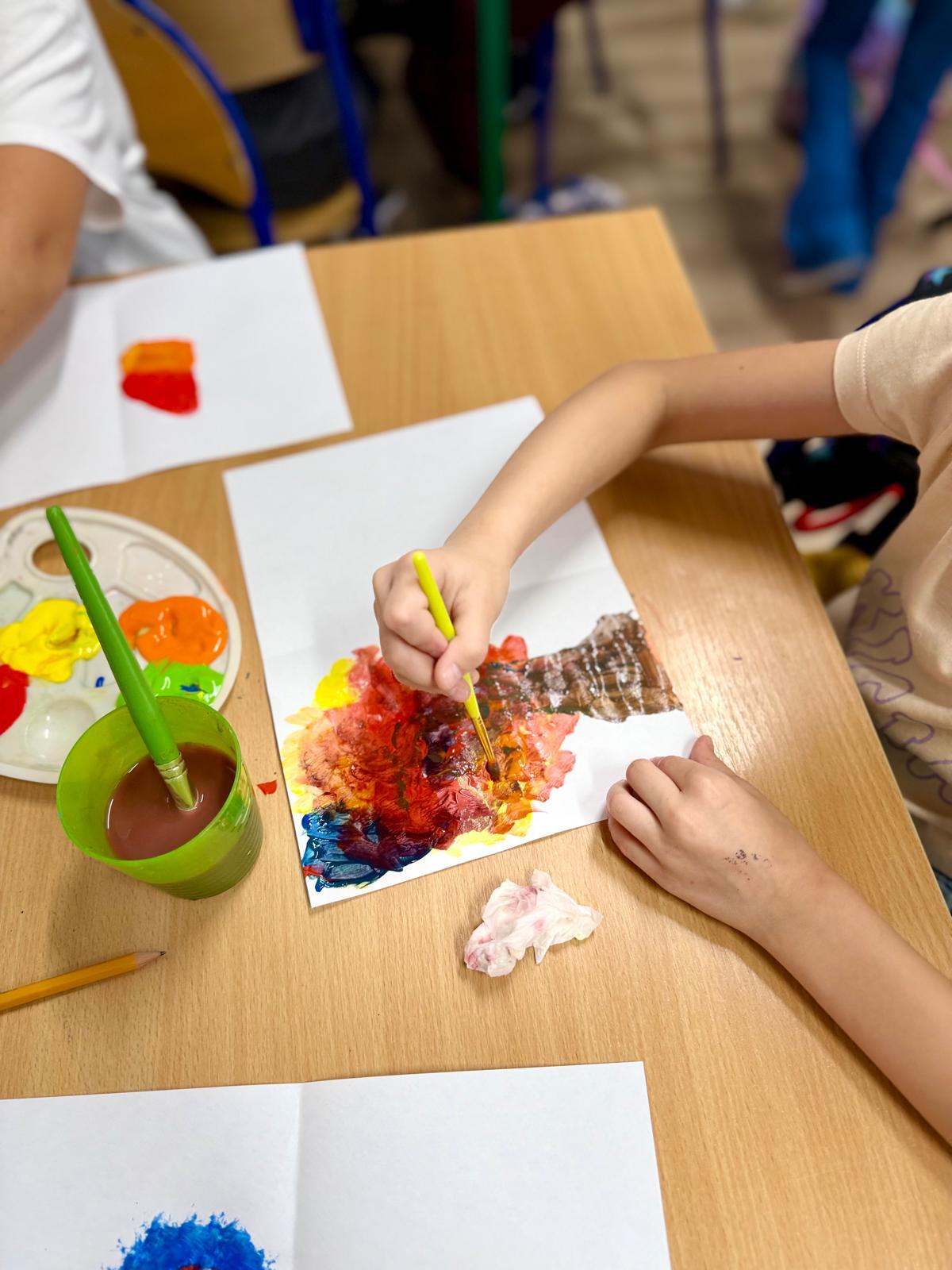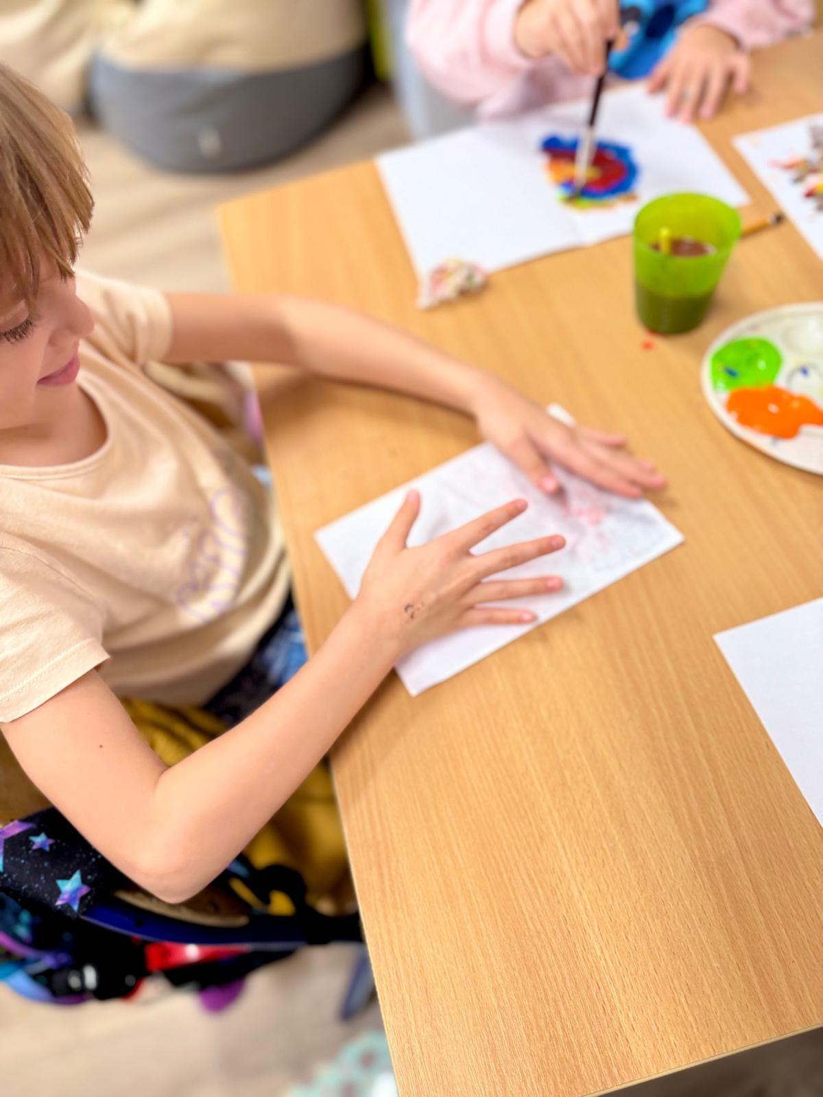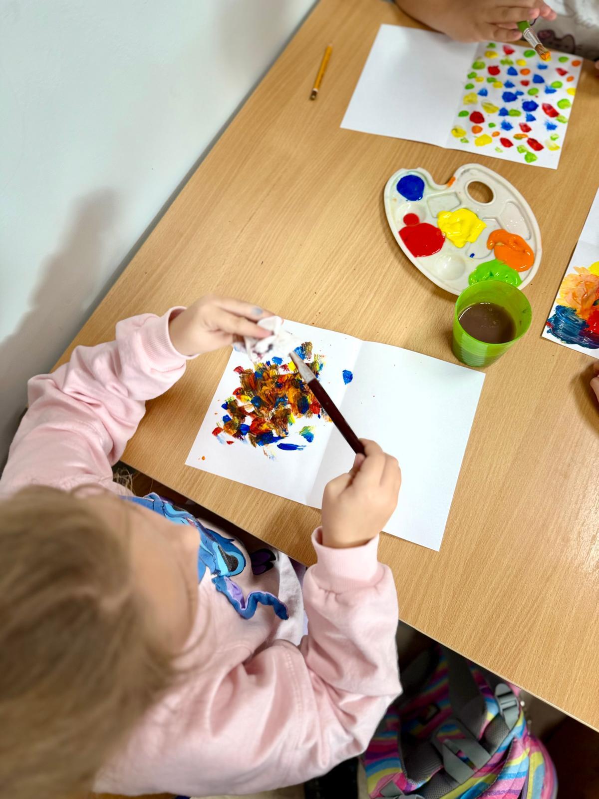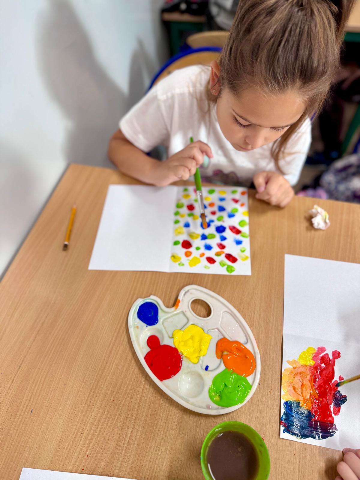 Przy okazji tej artystycznej zabawy wprowadziłem pojęcie osi symetrii. Dzieci same odkryły, że gdy kartkę złoży się na pół, powstaje odbicie lustrzane – dwa identyczne kształty. W ten sposób przekonały się, że matematyka i sztuka mogą się pięknie uzupełniać, a nauka może przyjść naturalnie – bez presji i w pełni radości.