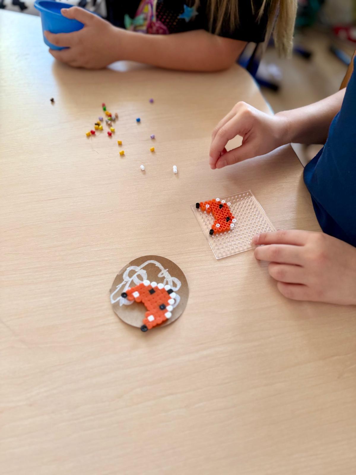 Na ostatnich zajęciach plastycznych Bystrzaki zamieniły się w małych artystów i rzemieślników! Tworzyliśmy leśne zwierzątka z koralików, które następnie zostały utrwalone przez prasowanie. Największym powodzeniem cieszył się lis – i nic dziwnego, bo wśród Bystrzaków nie brakowało sprytnych i pomysłowych rączek! 🦊