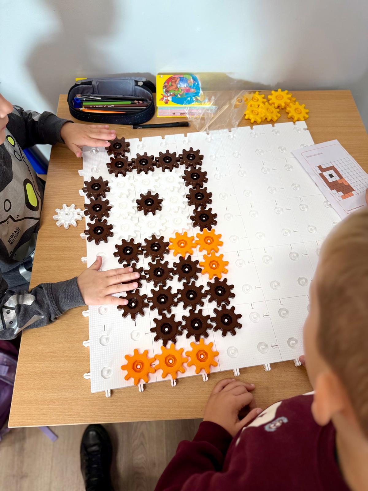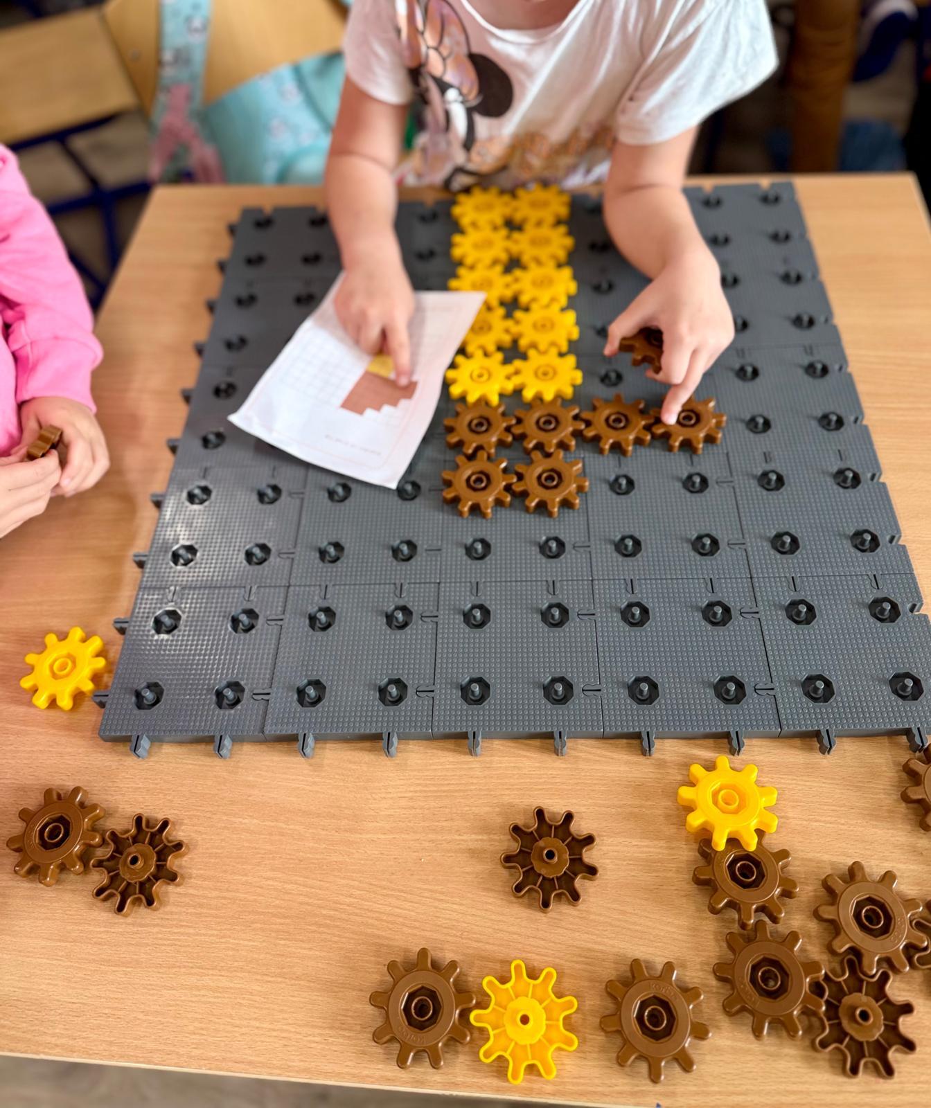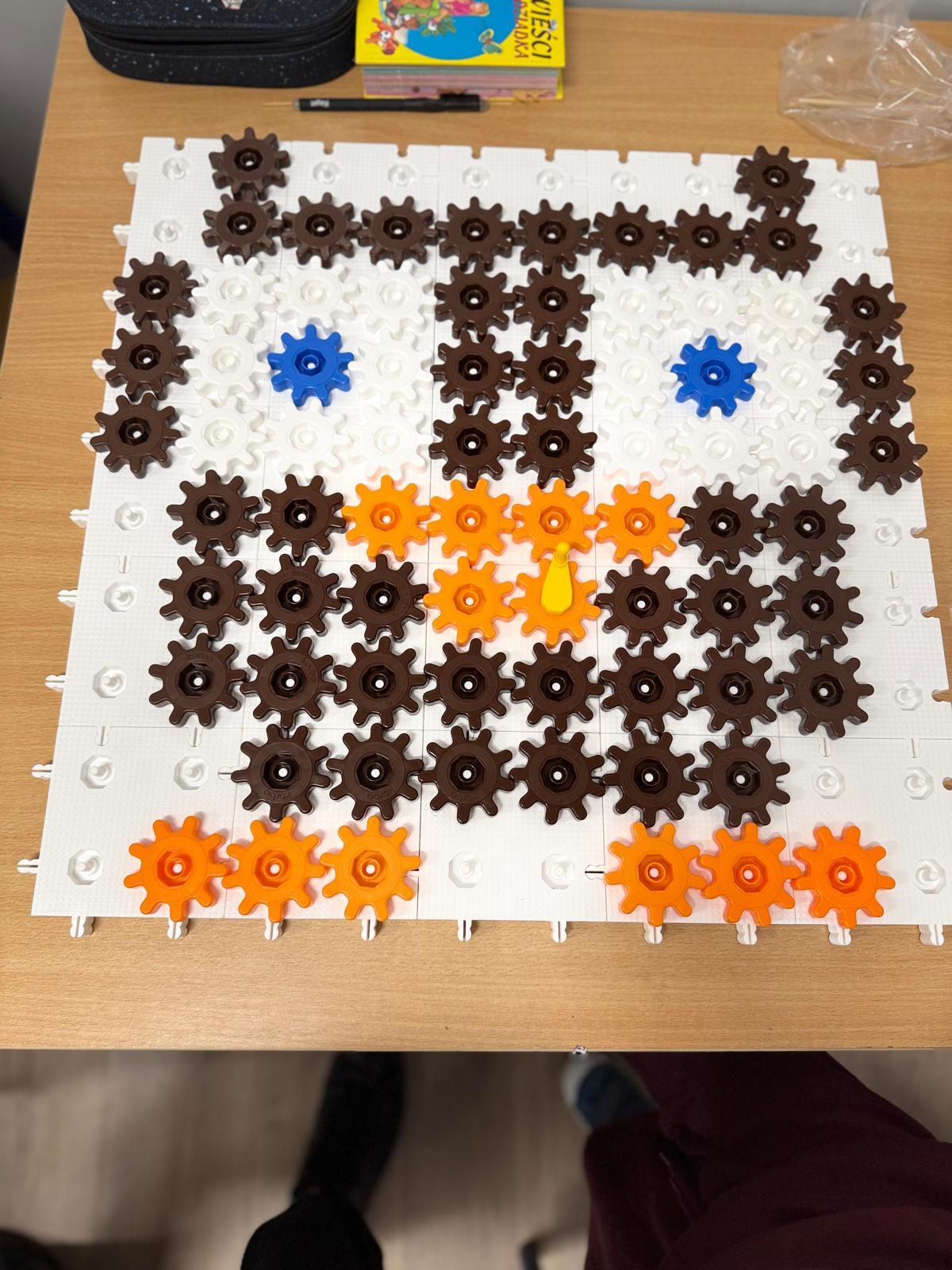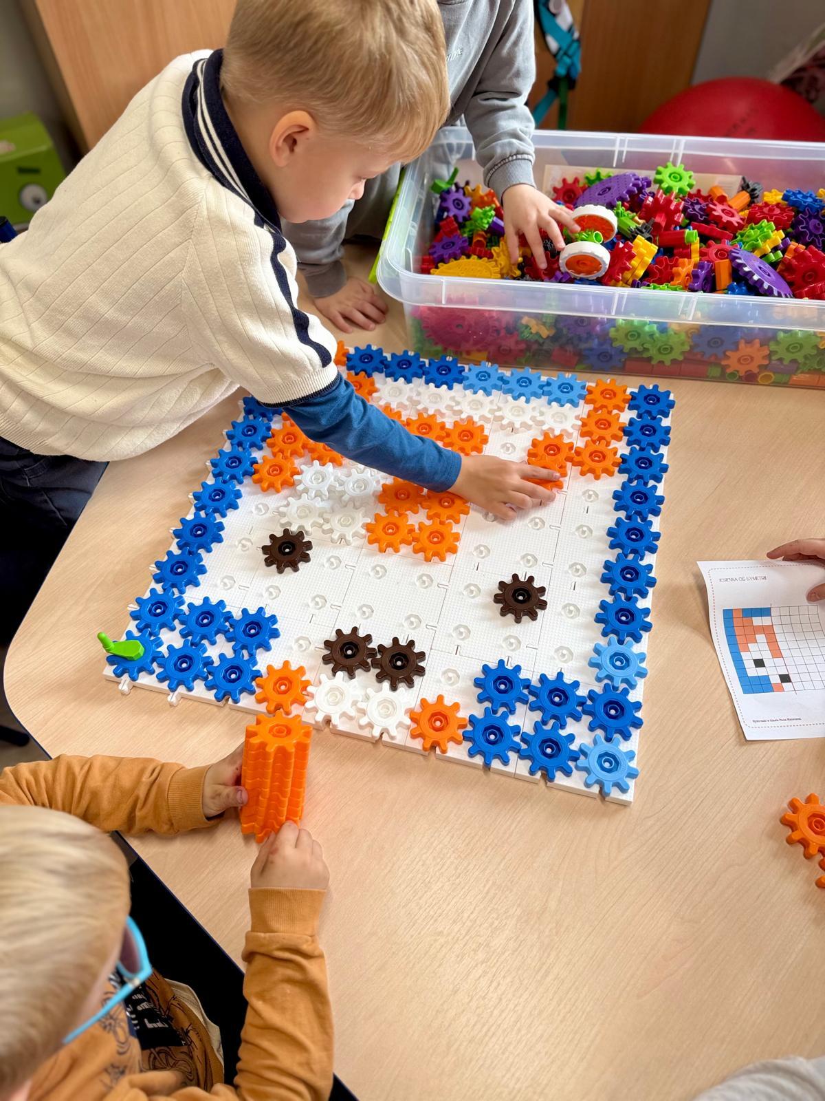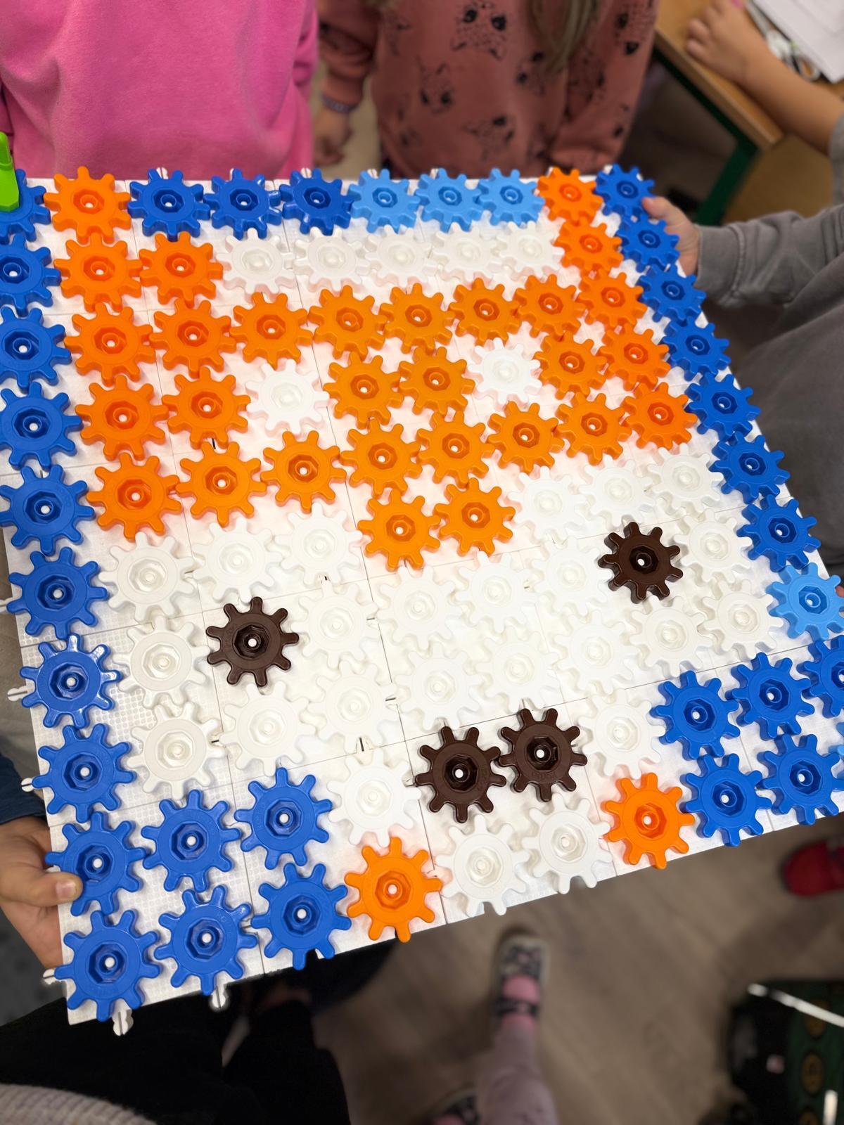 Na ostatnich zajęciach w pierwszej klasie odkrywaliśmy, czym jest oś symetrii. Nie przez definicje i regułki, ale przez… zabawę, eksperyment i działanie! Wykorzystałem do tego klocki Korbo oraz przygotowane wcześniej jesienne karty PixelArt. Na każdej karcie widniał obrazek — ale tylko w połowie! Zadaniem dzieci było zbudowanie bazy z klocków, ułożenie pierwszej części obrazka, a następnie dokończenie drugiej, symetrycznej połowy.