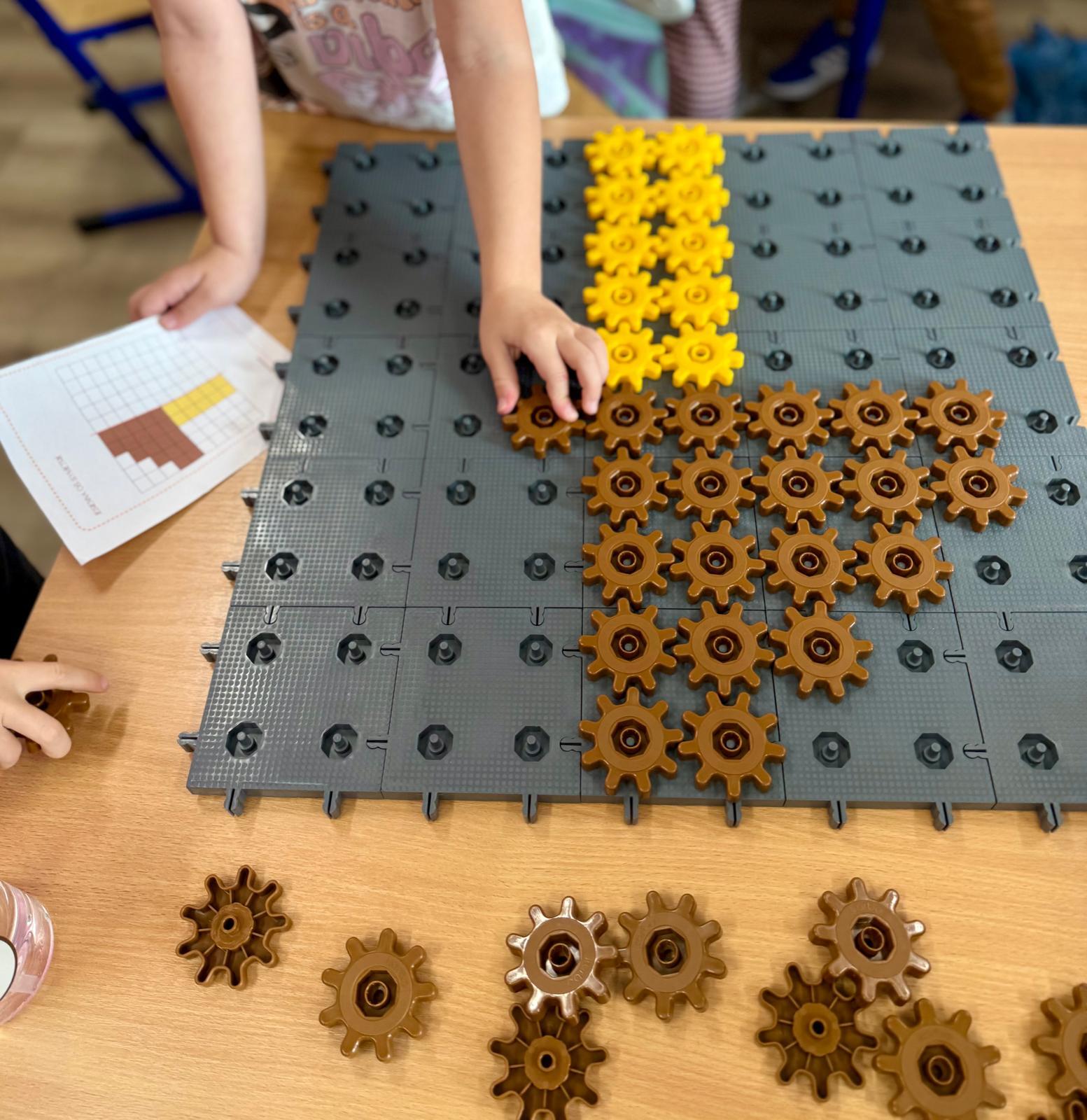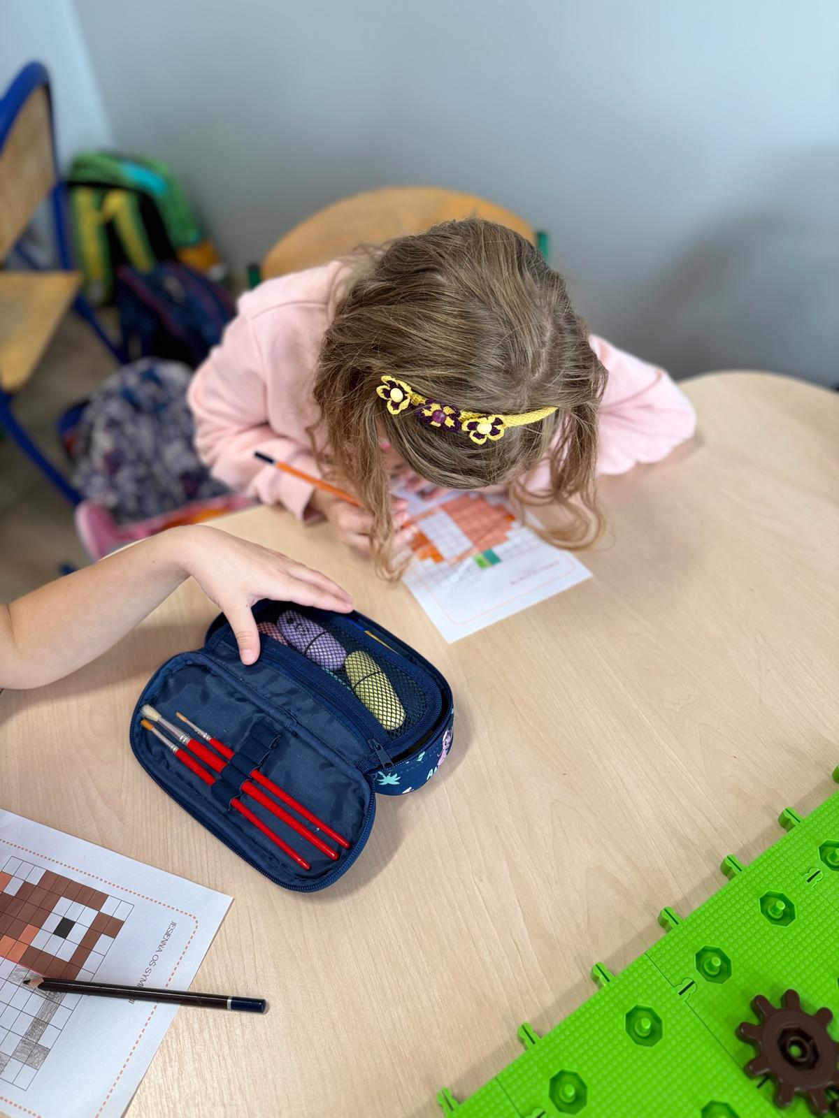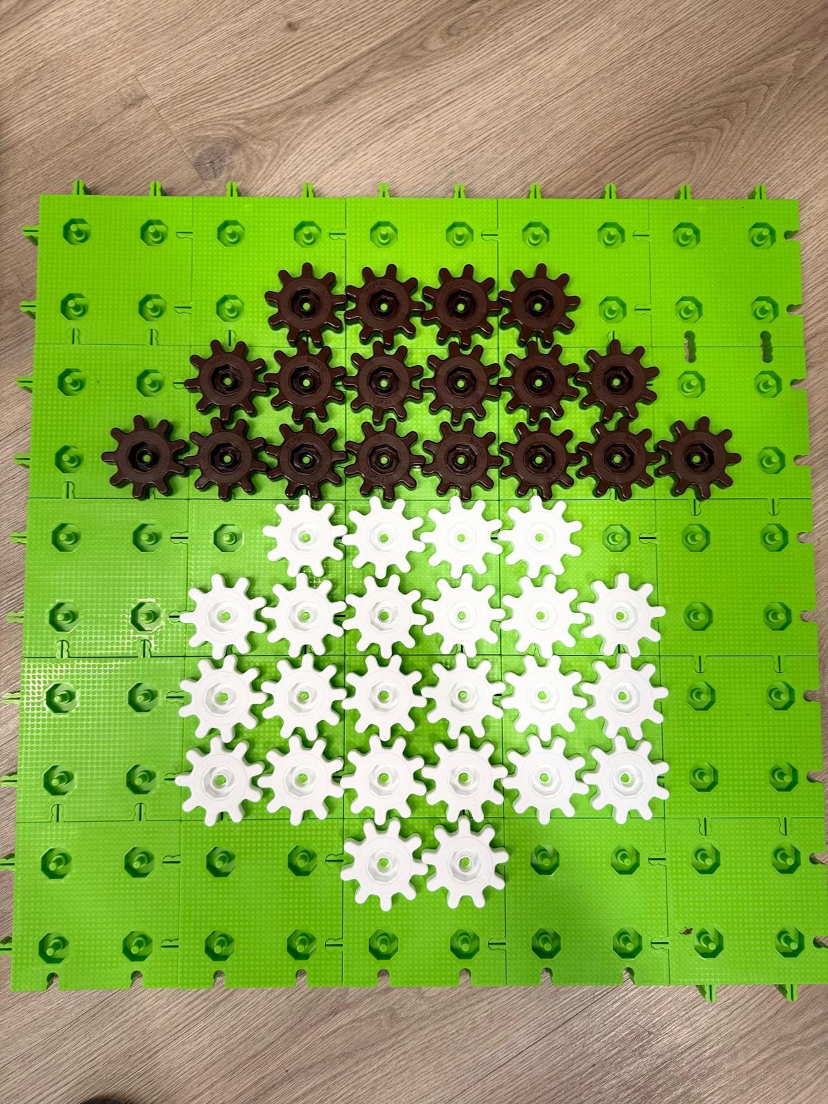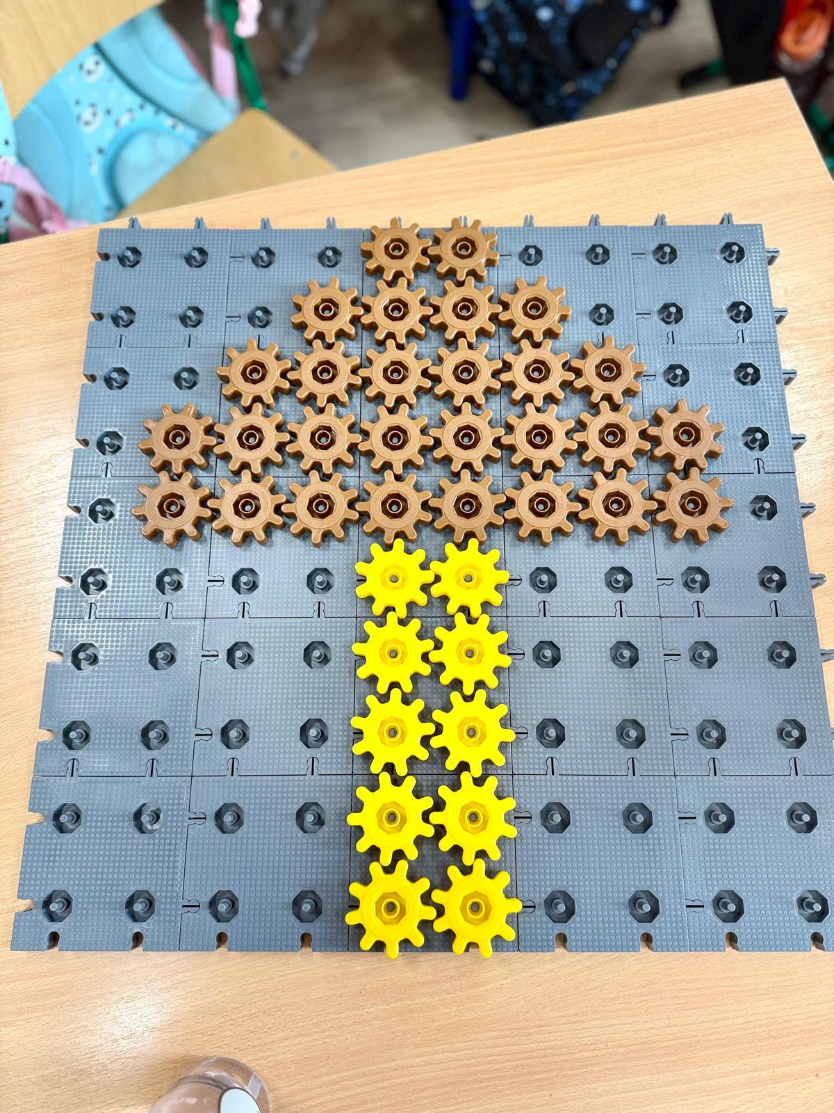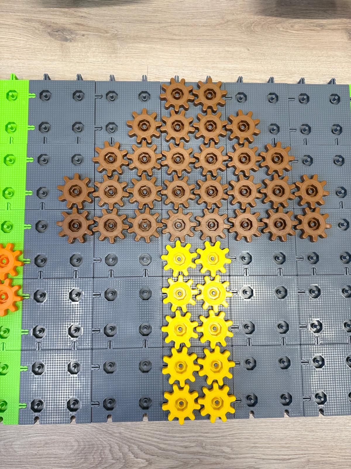 Na ostatnich zajęciach w pierwszej klasie odkrywaliśmy, czym jest oś symetrii. Nie przez definicje i regułki, ale przez… zabawę, eksperyment i działanie! Wykorzystałem do tego klocki Korbo oraz przygotowane wcześniej jesienne karty PixelArt. Na każdej karcie widniał obrazek — ale tylko w połowie! Zadaniem dzieci było zbudowanie bazy z klocków, ułożenie pierwszej części obrazka, a następnie dokończenie drugiej, symetrycznej połowy.