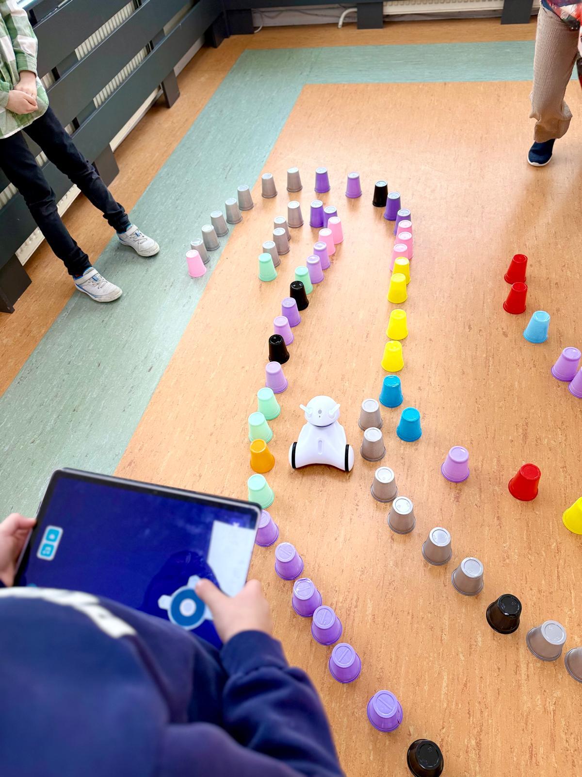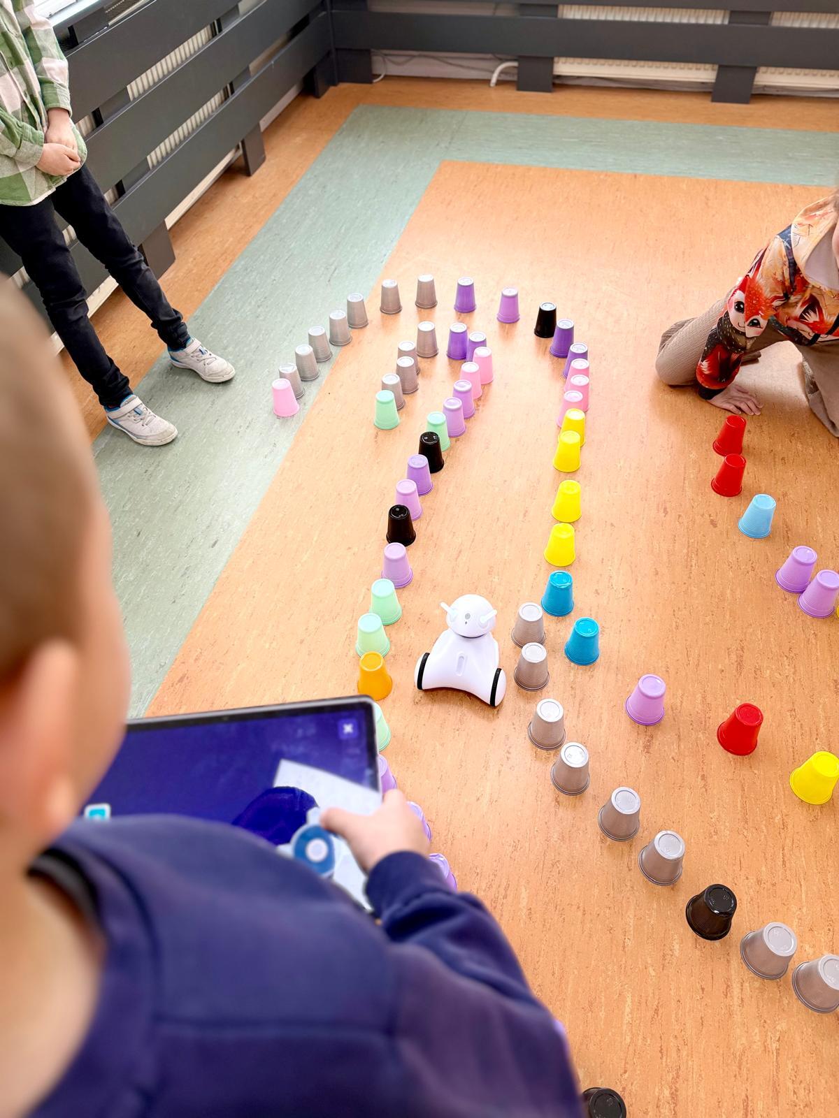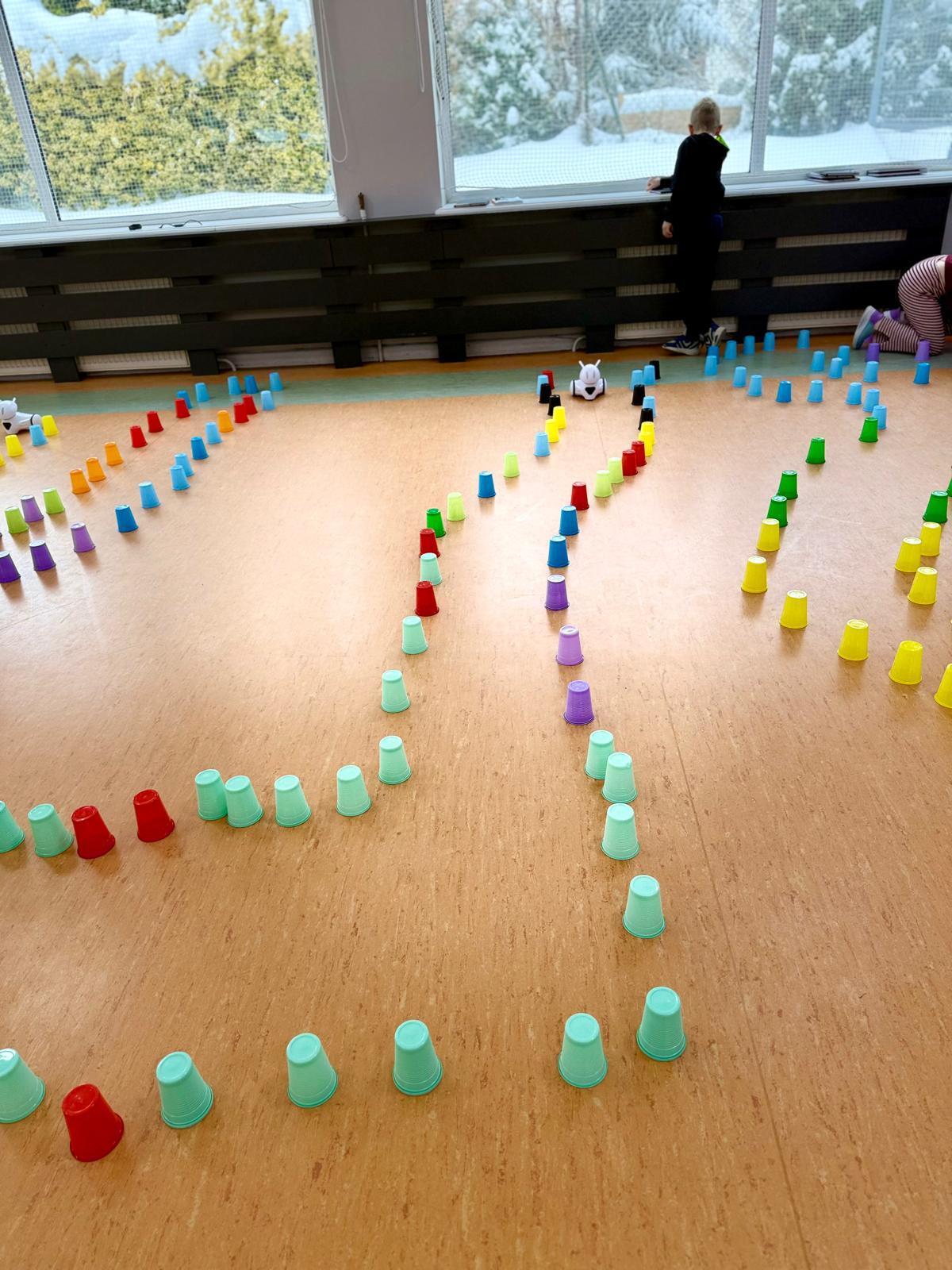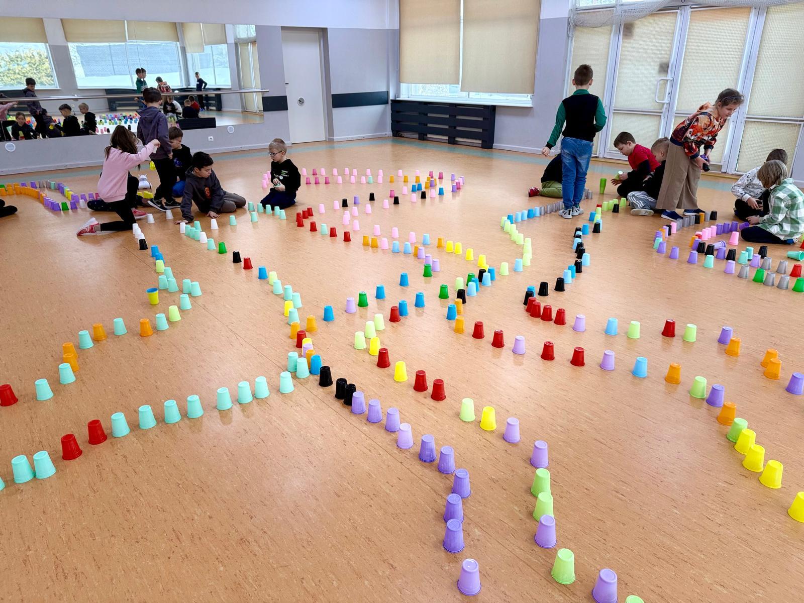 Dzieci pracowały w sześciu grupach. Na początek ich zadaniem było zbudowanie z kolorowych kubeczków drogi dla naszych robotów. Niby proste wyzwanie, a ile w nim było rozmów, negocjacji, pomysłów i śmiechu. Serce naprawdę rośnie, kiedy widzę, jak moje pierwszaki coraz lepiej potrafią się dogadywać.Jak słuchają siebie nawzajem. Jak uczą się, że wspólny cel jest ważniejszy niż „mój pomysł”. Ta współpraca z tygodnia na tydzień dojrzewa — i to jest piękne.