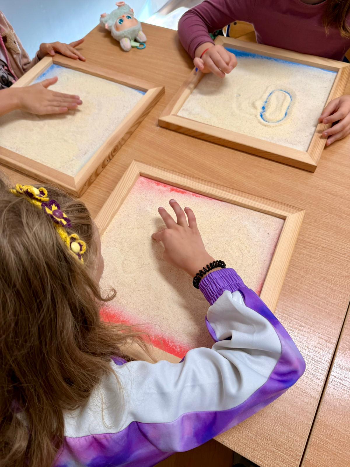 Co to znaczy, że uczymy się liter polisensorycznie? To znaczy, że uruchamiamy różne zmysły jednocześnie: wzrok, słuch, dotyk, a nawet ruch całego ciała. Dzięki temu litera nie jest tylko symbolem widocznym na kartce, ale nabiera kształtu, faktury, brzmienia i rytmu. Dziecko doświadcza jej w pełni – widzi ją, słyszy, czuje palcami i zapisuje w pamięci ruchowej.