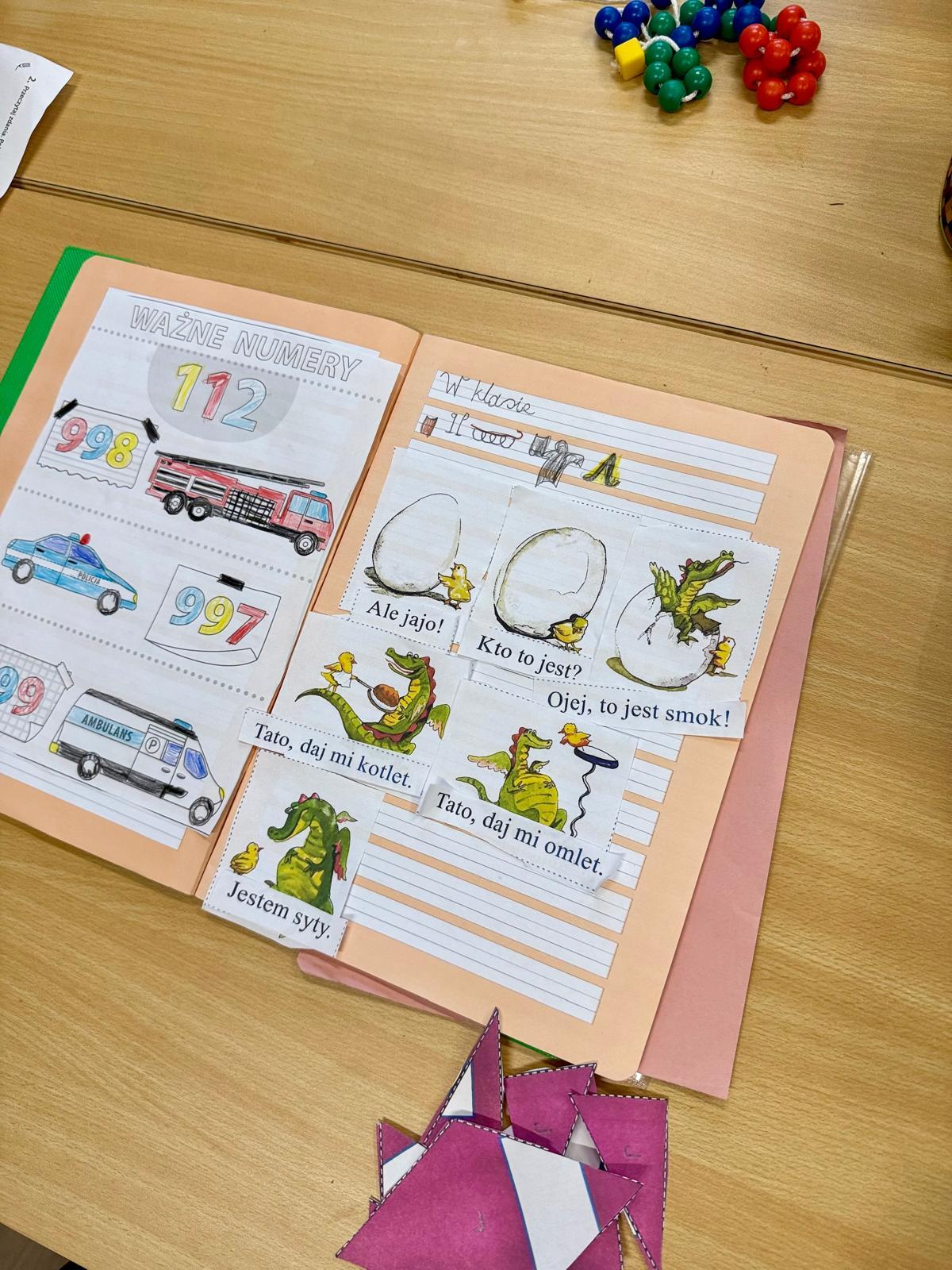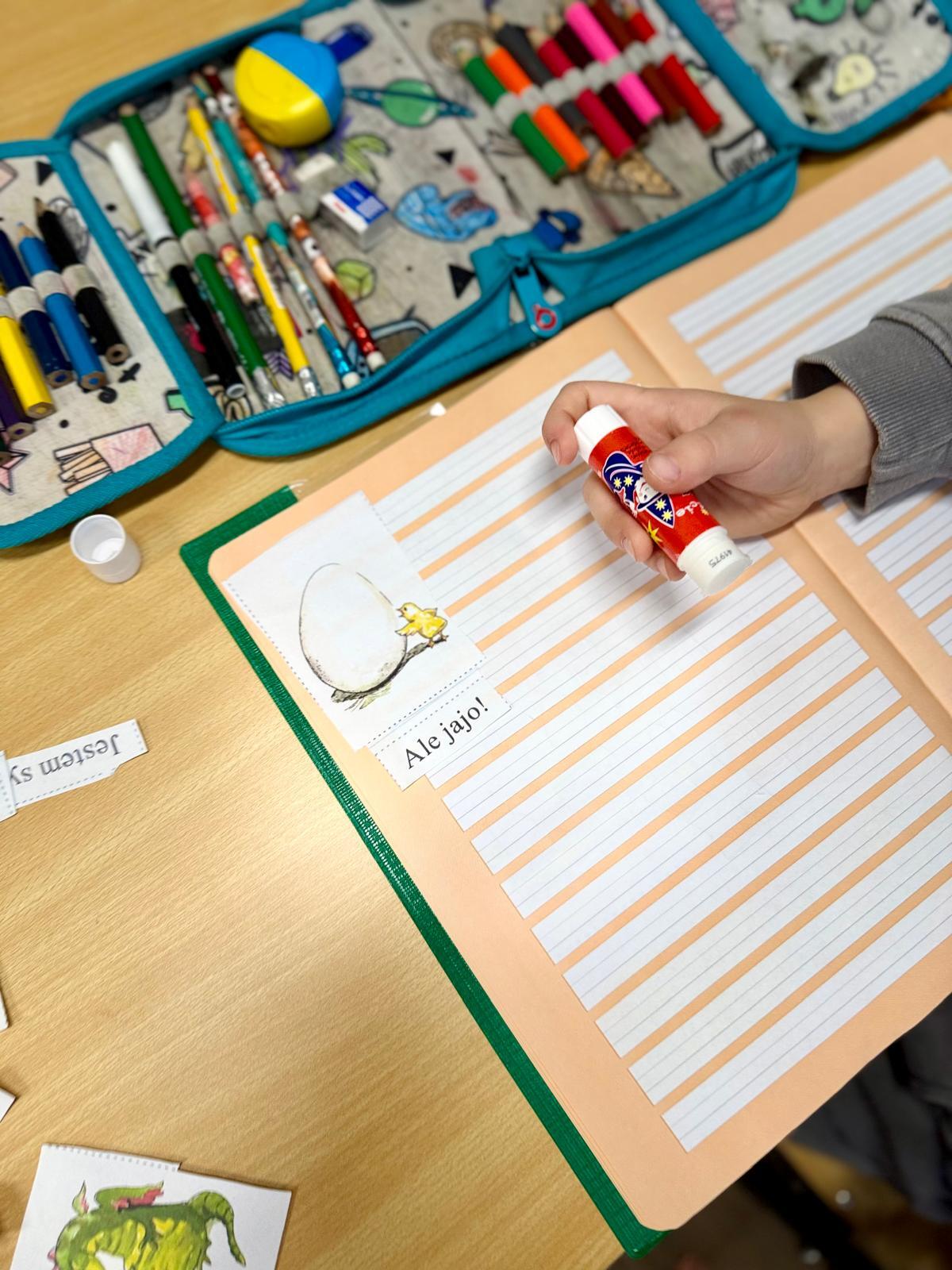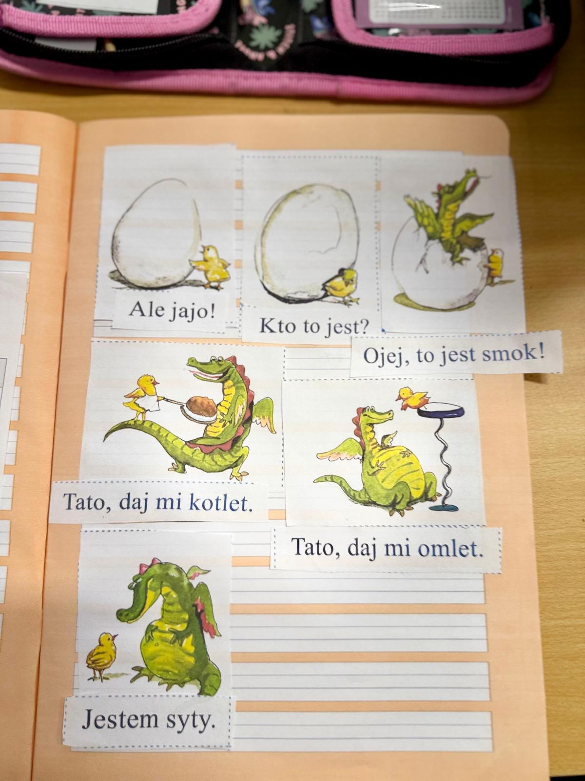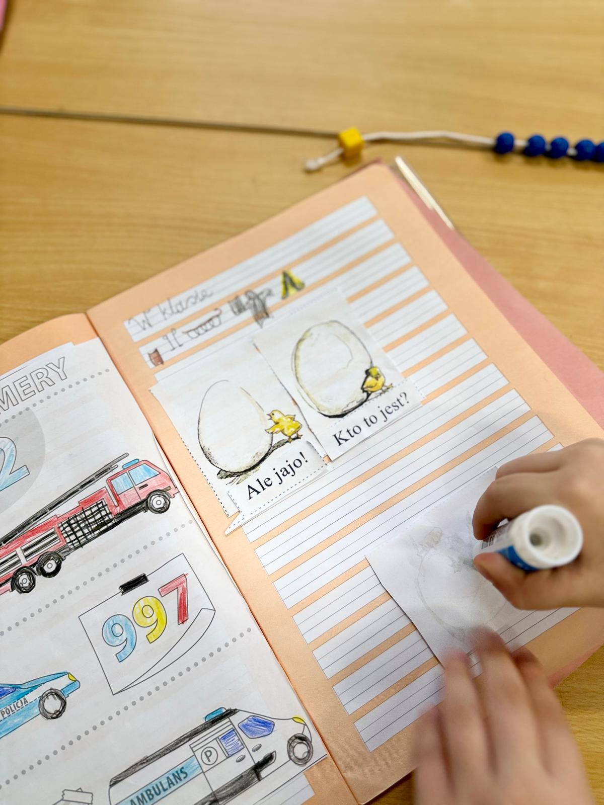 Na zdjęciach widać zeszyty pierwszoklasistów. Kilka obrazków, krótkie zdania, nożyczki, klej. Dla kogoś z zewnątrz — zwykła „układanka”. Dla mnie — jedno z ważniejszych ćwiczeń w nauce czytania. Dzieci miały za zadanie ułożyć historyjkę w odpowiedniej kolejności i dopasować zdania do obrazków. Brzmi prosto? Tylko pozornie. Bo to zadanie nie sprawdzało, czy dziecko potrafi czytać. Sprawdzało, czy rozumie to, co czyta.