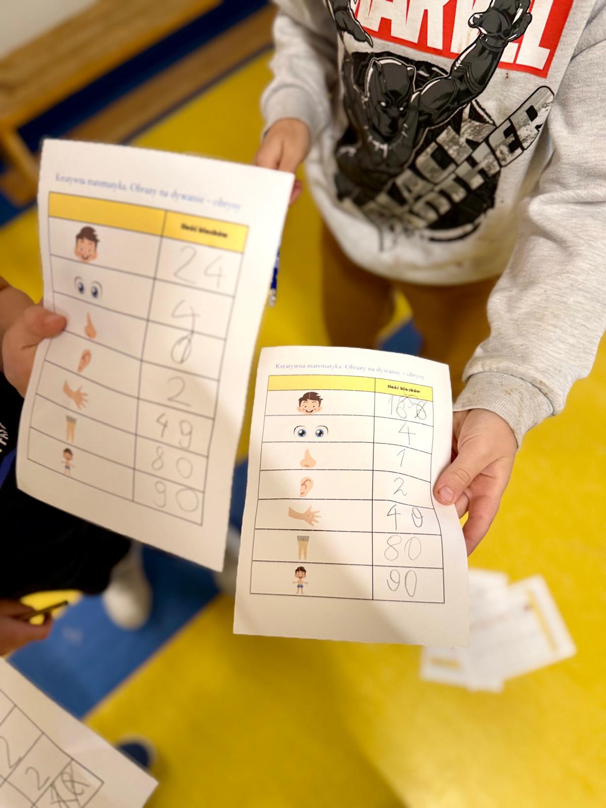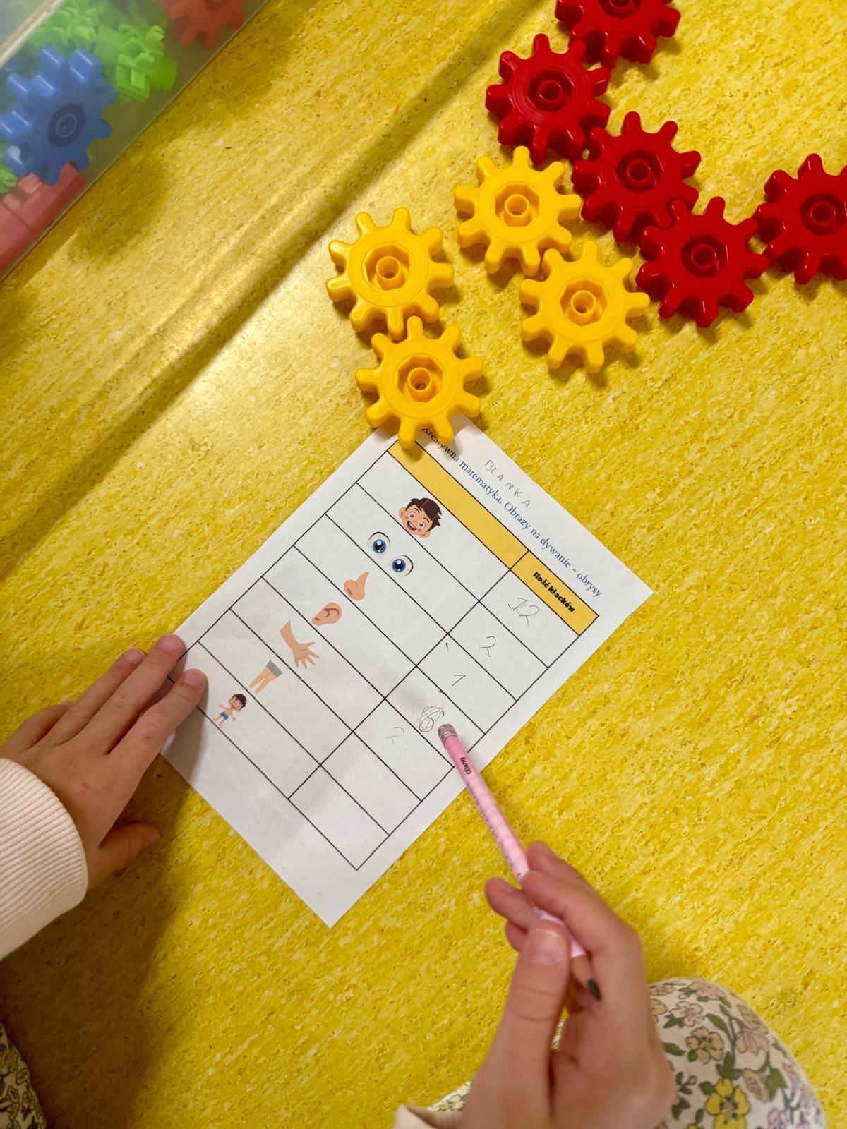 A potem przyszła pora na liczenie.Każde dziecko otrzymało kartę pracy z tabelką – i zaczęło się prawdziwe matematyczne wyzwanie: