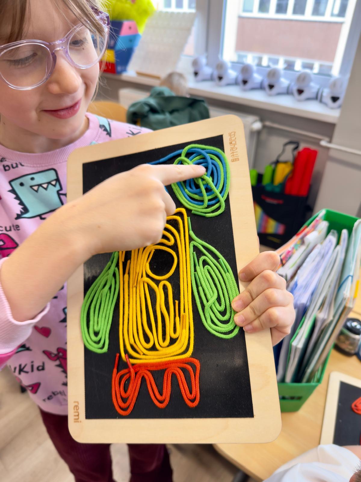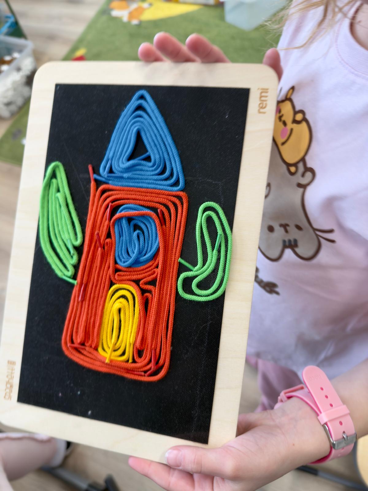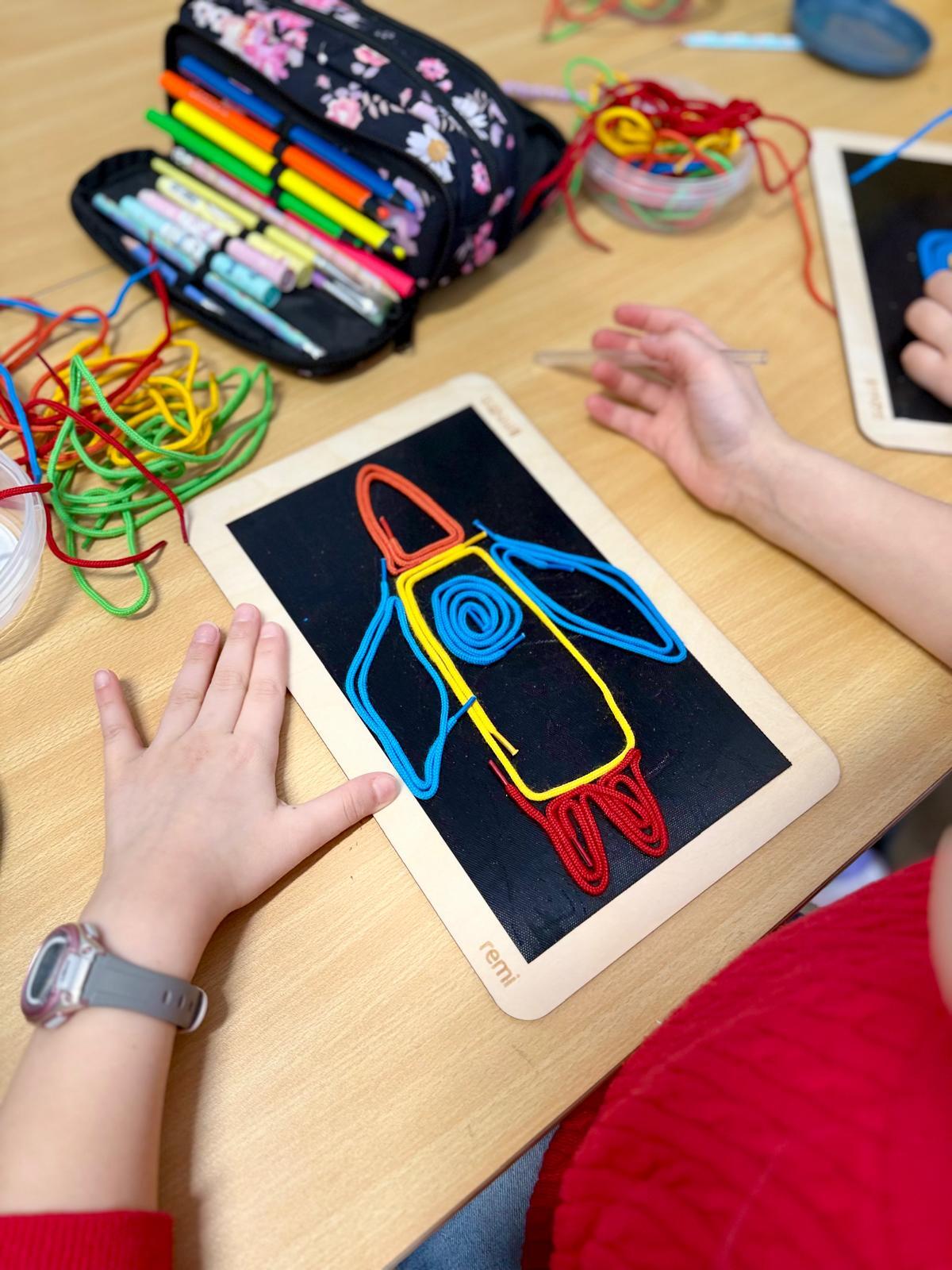 🟡Rozwój motoryki małej – precyzyjne układanie cienkich elementów wzmacnia dłoń i przygotowuje do pisania. To konkretne wsparcie kompetencji grafomotorycznych.
