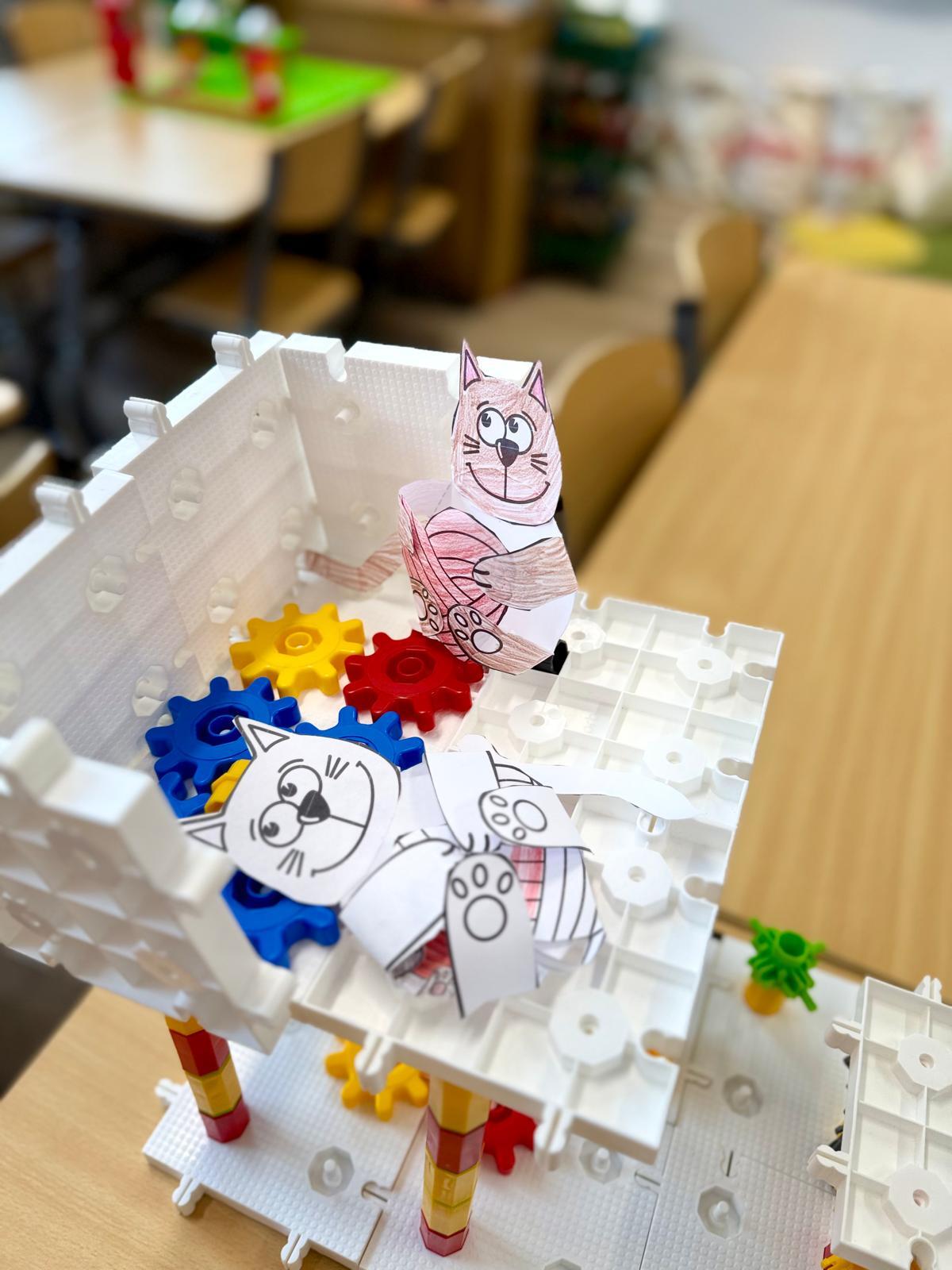Na zakończenie każde dziecko wykonało papierowego kota, który „zamieszkał” na przygotowanym drapaku. Klasa wypełniła się kolorowymi kotami i jeszcze większą dumą z tego, co udało się wspólnie stworzyć.