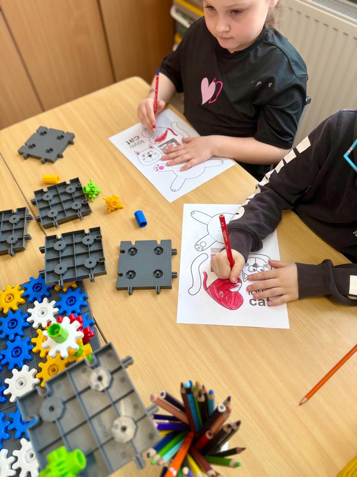 Postanowiliśmy uczcić ten dzień w praktyczny sposób i zbudować drapaki dla kotów. Dzieci same zdecydowały, czy chcą pracować w czteroosobowych zespołach, trójkach czy w parach. Świadomie oddałem im tę decyzję – chciałem, aby poczuły sprawczość i odpowiedzialność za sposób swojej pracy.