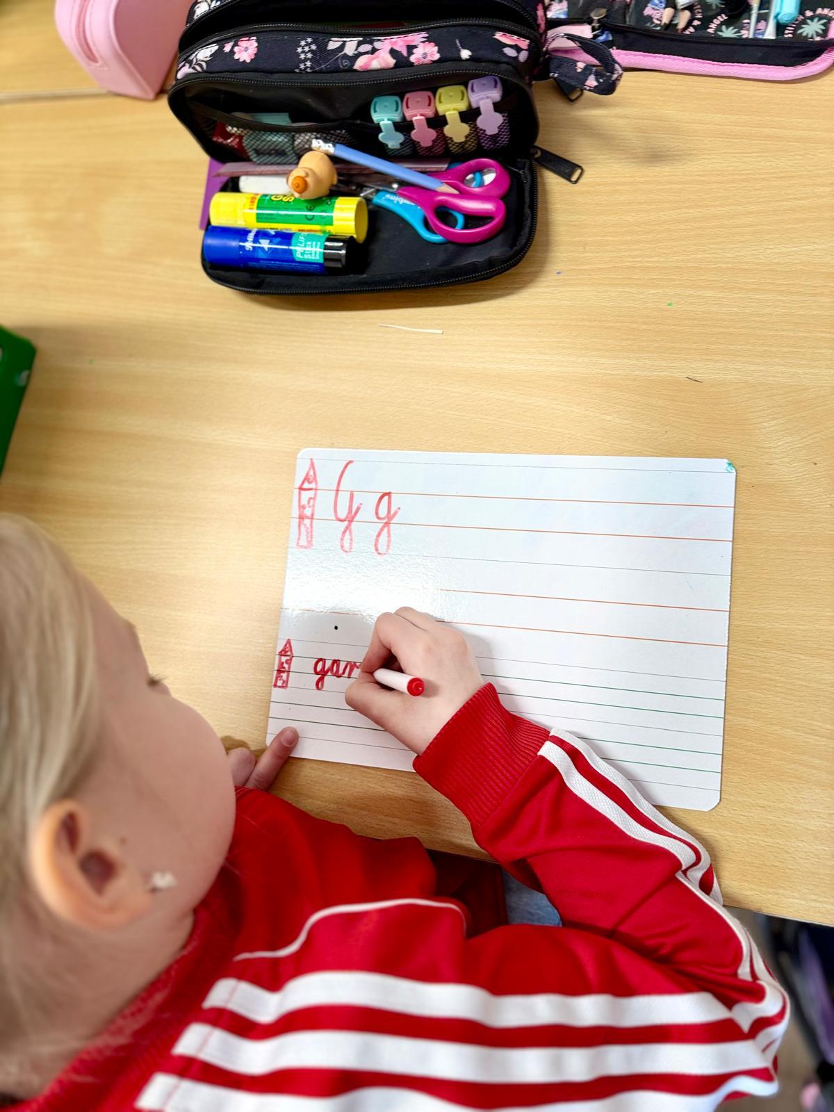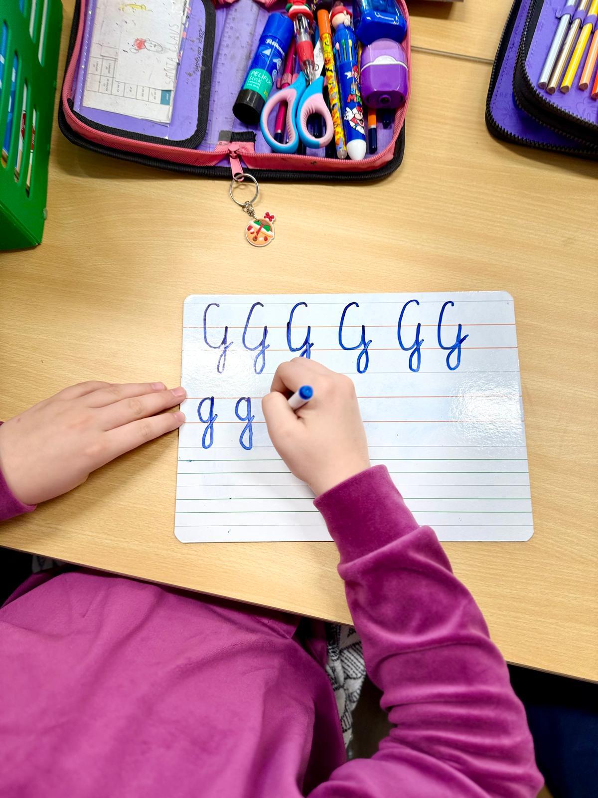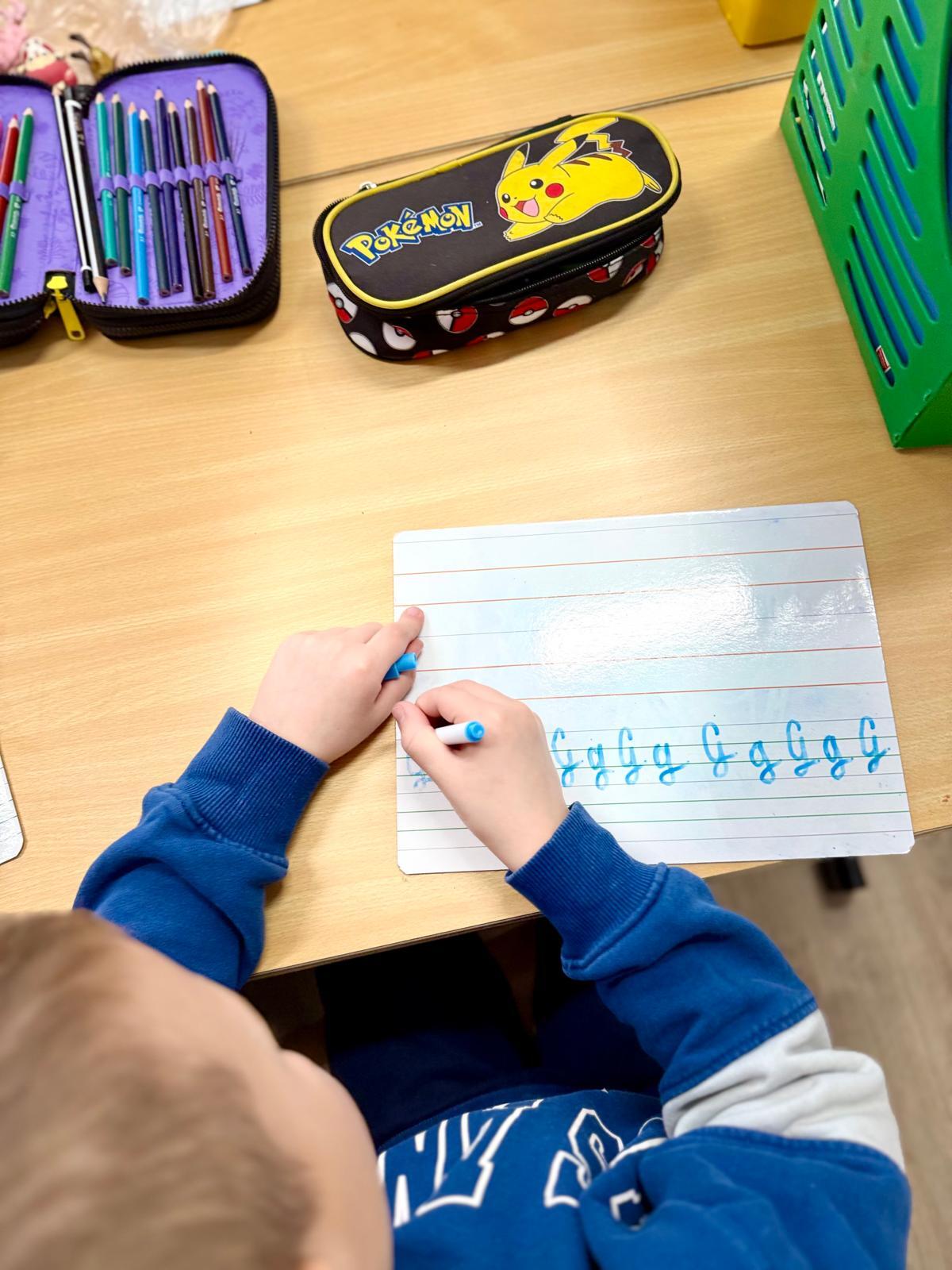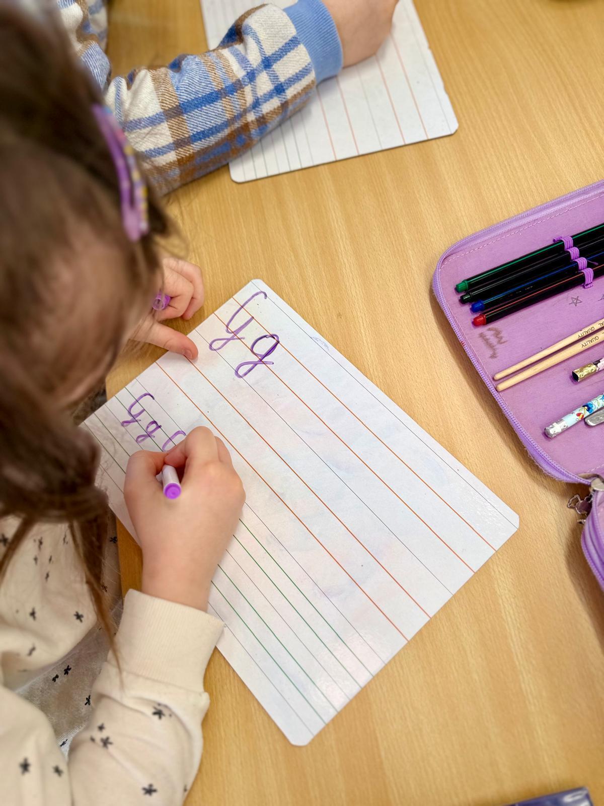 Zależy mi na tym, aby dzieci najpierw zrozumiały ruch, a dopiero potem utrwalały go w zeszycie. Tablica daje im przestrzeń do próbowania, poprawiania i szukania właściwego kierunku. Błąd można zetrzeć jednym ruchem, więc nie wywołuje napięcia ani zniechęcenia.