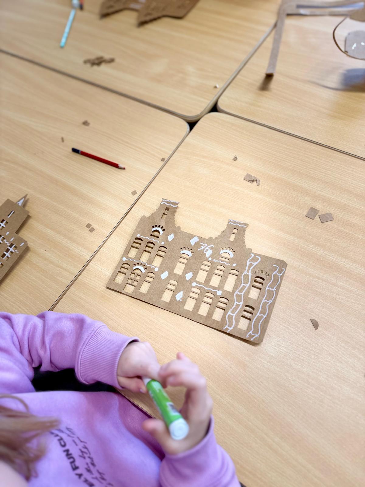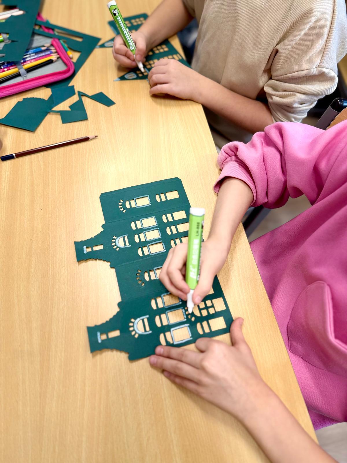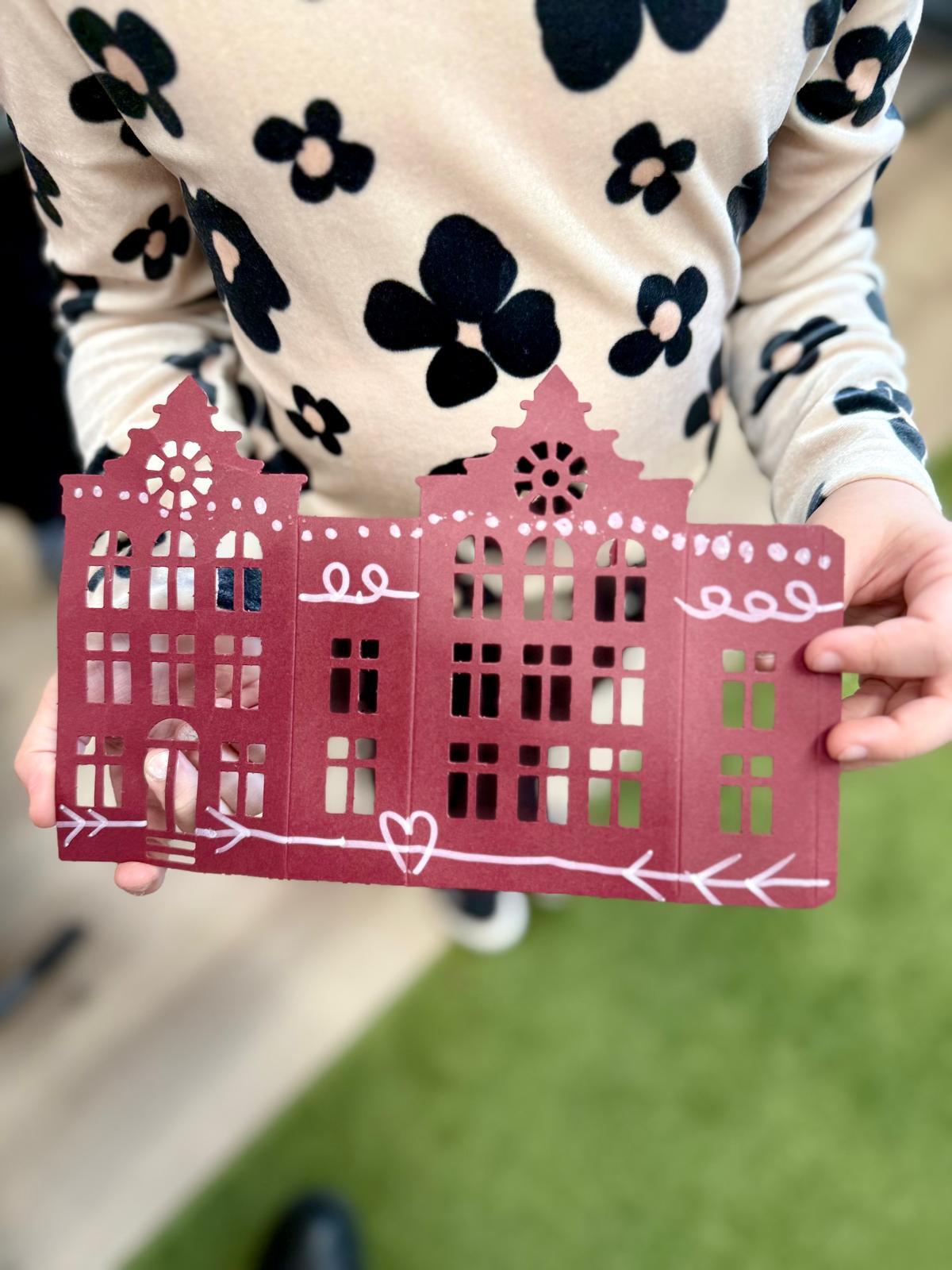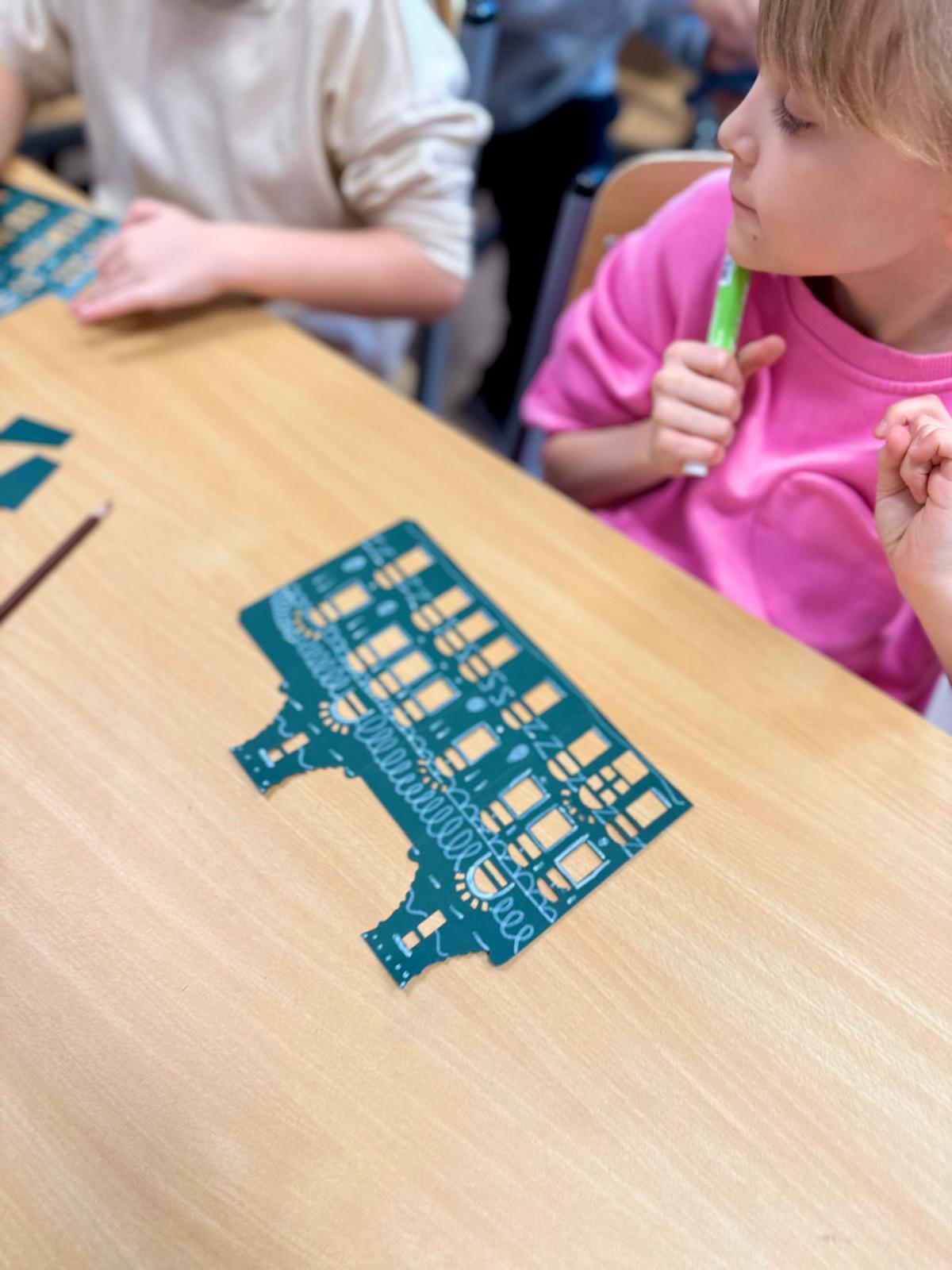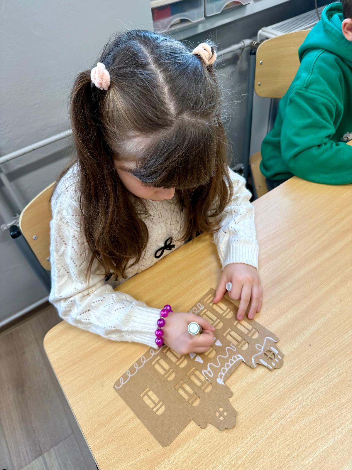 Zestawy kamieniczek są niepozorne, ale kiedy dzieci zaczynają nad nimi pracować, dzieje się coś pięknego. Najpierw cierpliwie wypychają wszystkie okna, drzwi i drobne elementy. To moment, w którym każdy z nich odkrywa, że precyzja naprawdę ma znaczenie. Potem przychodzi czas na dekorowanie – białe pisaki w ruch i nagle zwykłe kartonowe domki zamieniają się w zimowe miasteczko pełne śnieżnych wzorów, gwiazdek, zawijasów i dziecięcej wyobraźni.